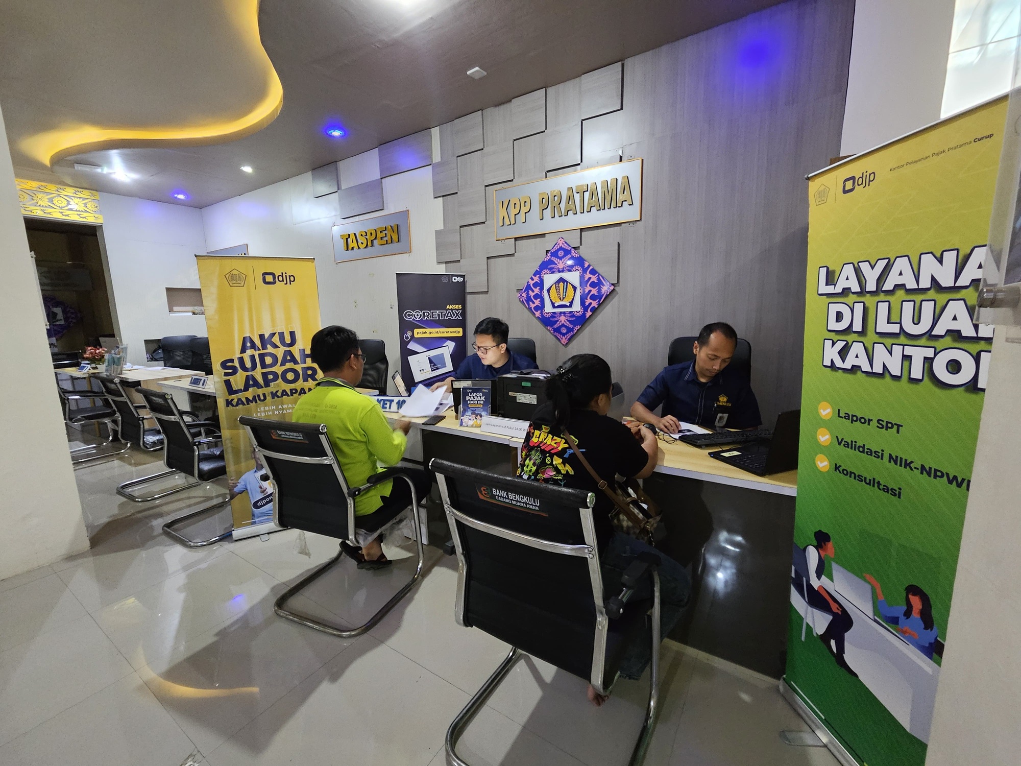 Dalam kegiatan ini, dua pelaksana dari KPP Pratama Curup, Antonius Bakti Pratama Siregar dan Freinzaldi Akbar, memberikan asistensi kepada warga Lebong dan sekitarnya terkait berbagai layanan perpajakan. Layanan yang disediakan antara lain asistensi pengisian Surat Pemberitahuan (SPT) Tahunan, registrasi wajib pajak, konsultasi perpajakan, serta berbagai layanan administrasi pajak lainnya.