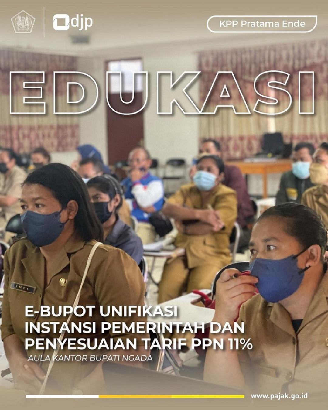 Tim penyuluh KPP Pratama Ende bersama Kepala KP2KP Bajawa, Heri Siswanto melakukan sosialisasi Penyesuaian Tarif PPN 11 % dan Implementasi e-Bupot Unifikasi Instansi Pemerintah di Aula Kantor Bupati Ngada (Selasa, 12/4). Kegiatan sosialisasi tersebut dihadiri oleh seluruh bendahara pemerintah yang berada di wilayah Kabupaten Ngada.