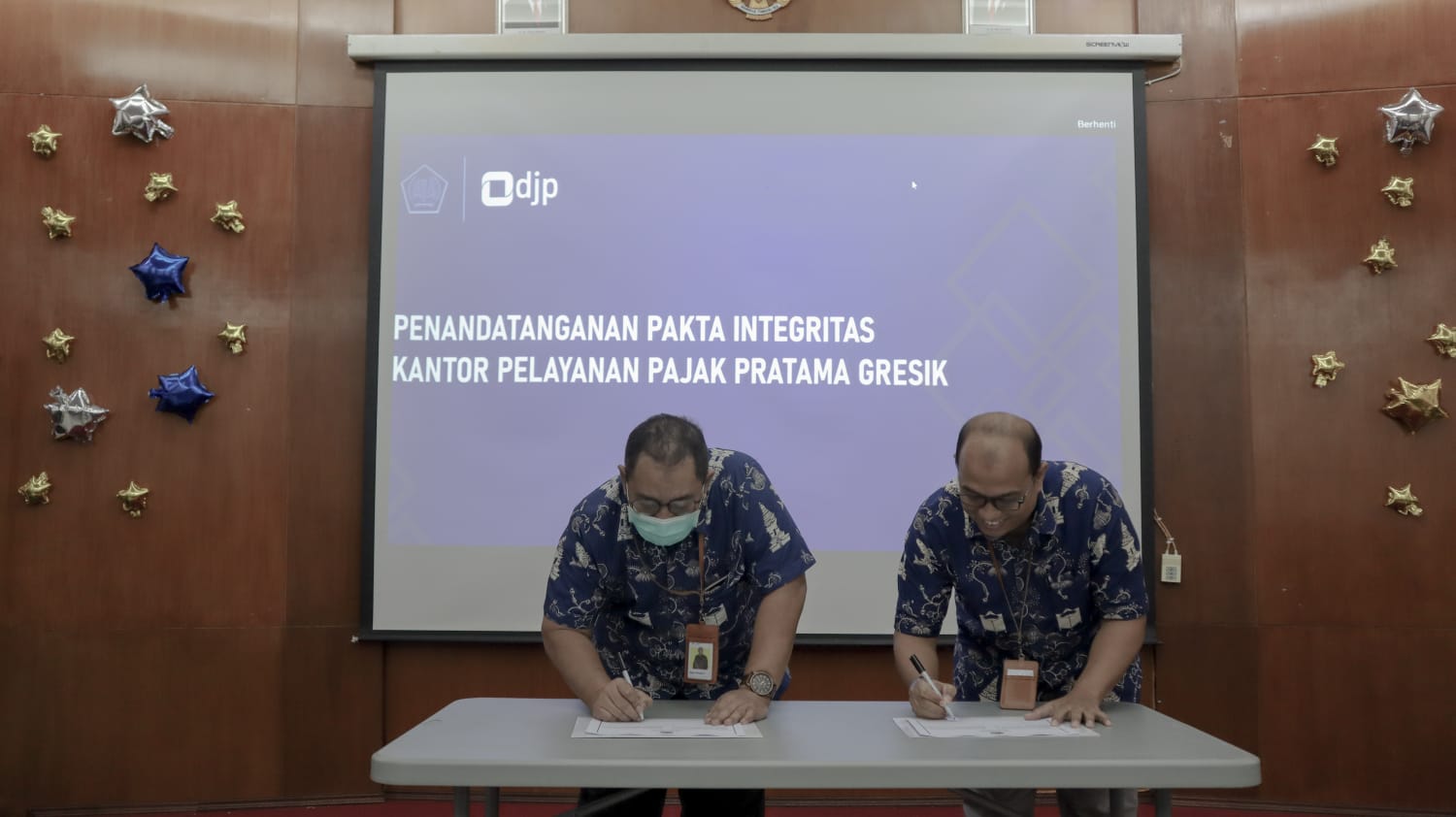 Kegiatan diawali dengan Penandatanganan Pakta Integritas oleh seluruh pegawai KPP Pratama Gresik dan diakhiri dengan Penandatanganan Piagam Pencanangan oleh Kepala KPP Pratama Gresik.