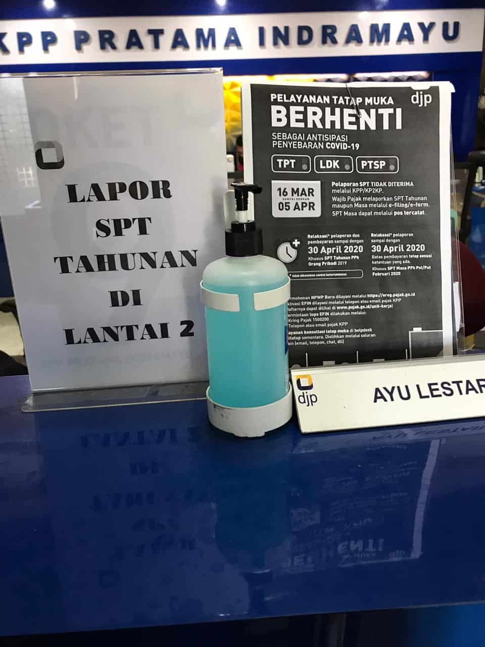 KPP Pratama Indramayu menyelenggarakan persiapan untuk kembali menjalankan aktivitas kantor yang sesuai dengan protokol kesehatan, bertempat di lingkungan kantor di Indramayu (Jumat, 5/6). Salah satu persiapannya adalah menyediakan fasilitas kesehatan seperti hand sanitiser, tempat cuci tangan, dan juga pembatasan jarak pada tempat duduk.