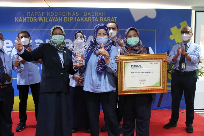 Kepala Kantor Wilayah DJP Jakarta Barat Erna Sulistyowati memberikan sebelas penghargaan kepada Kantor Pelayanan Pajak Pratama Jakarta Kalideres pada kegiatan Rapat Koordinasi Daerah Kantor Wilayah DJP Jakarta Barat 2021 yang dilaksanakan pada Aula Lantai I Kanwil DJP Jakarta Barat (Rabu, 10/2). Penghargaan tersebut diberikan atas kinerja Kantor Pelayanan Pajak Pratama Jakarta Kalideres pada tahun 2020.