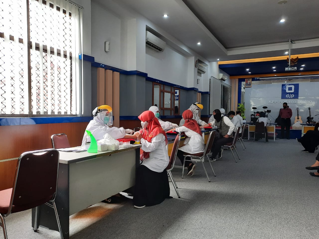 KPP Pratama Klaten kembali melakukan tes cepat Covid-19 pada di Klaten (Senin, 7/12). Tes cepat ini merupakan tes yang keempat yang dilakukan KPP Pratama Klaten. Kegiatan yang diadakan di aula KPP Pratama Klaten ini diikuti oleh 122 pegawai dan 19 tenaga pendukung.