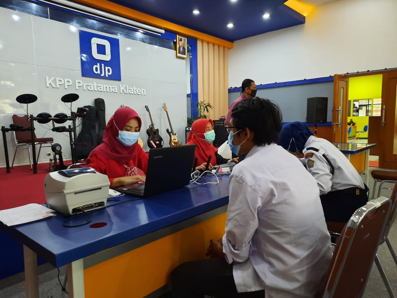 Sebelum mengikuti tes cepat pegawai KPP Pratama Klaten melakukan pendaftaran terlebih dahulu dengan mengisi formulir isian. Setelah melakukan pendaftaran pegawai baru dapat mengikuti tes cepat untuk diambil sampel darahnya.