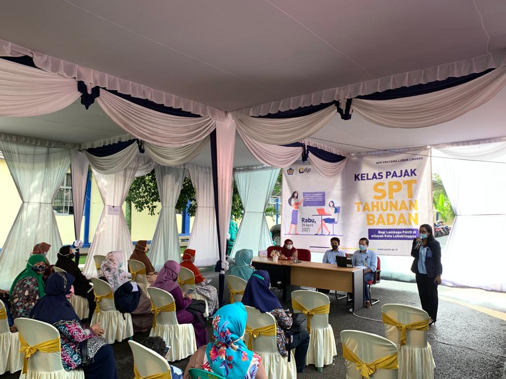 KPP Pratama Lubuklinggau menggelar Kelas Pajak bagi lembaga PAUD di Lubuklinggau (Rabu,28/4). Kegiatan tatap muka tersebut dihadiri 12 orang perwakilan dari sembilan lembaga PAUD di Kota Lubuklinggau. Materi yang diberikan adalah tentang pelaporan SPT Tahunan PPh secara daring (online).