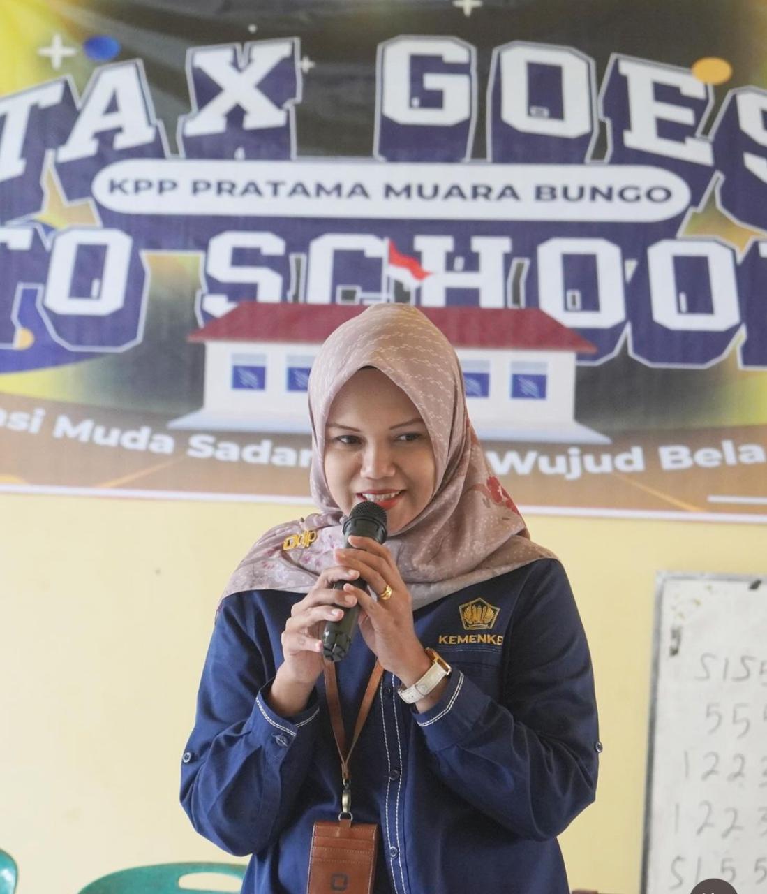 Penyuluh Pajak KPP Pratama Muara Bungo Ingryani dan Metha Novita menyampaikan materi tentang perpajakan dan memberikan pemahaman tentang free rider, yaitu warga negara yang tidak memberikan kontribusi dalam bentuk apapun namun menikmati segala fasilitas negara. KPP Pratama Muara Bungo berharap siswa-siswi SMK 2 Setih Setio dan seluruh generasi muda Indonesia tidak akan ada yang menjadi seorang free rider.