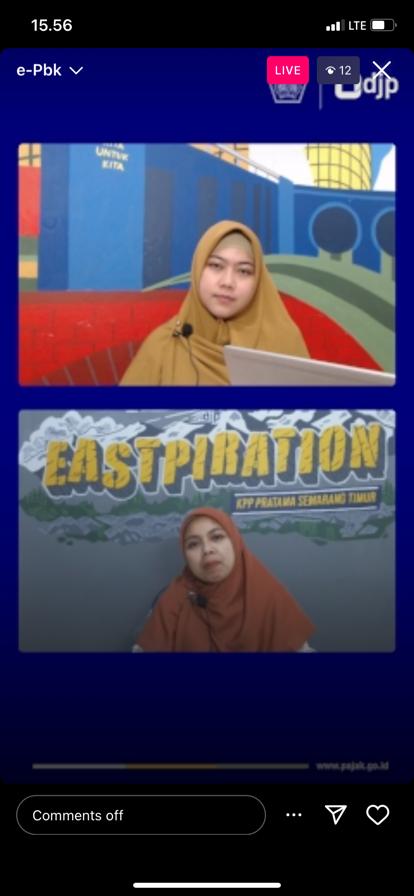 Tim Penyuluh Kantor Pelayanan Pajak (KPP) Pratama Semarang Timur kembali menyapa wajib pajak melalui Live Instagram dalam program TAHU PONG (pengeTAHUan Pajak On instaGram) dengan tema Implementasi e-Pbk di Semarang (Kamis, 15/6).