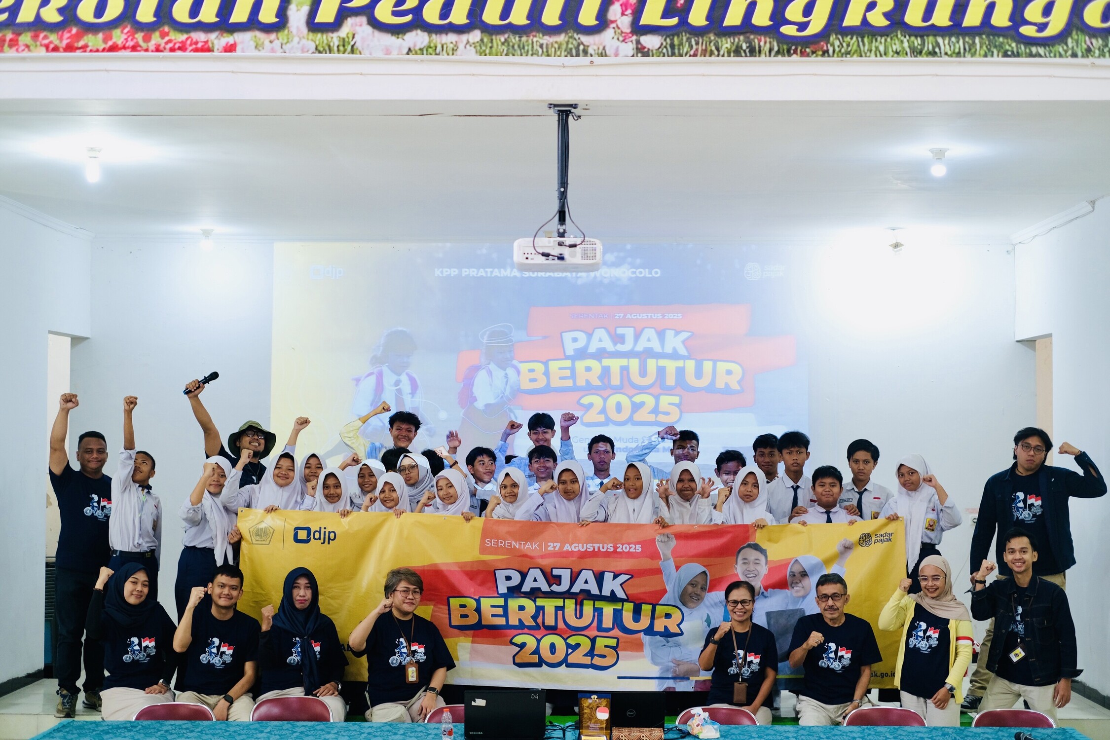 Kantor Pelayanan Pajak (KPP) Pratama Surabaya Wonocolo melaksanakan kegiatan “Pajak Bertutur” di SMP Negeri 13 Surabaya (Rabu, 27/08). Acara ini merupakan program edukasi perpajakan Direktorat Jenderal Pajak (DJP) yang dilaksanakan serentak di berbagai daerah di Indonesia, sekaligus menjadi bagian dari peringatan Hari Kemerdekaan Republik Indonesia yang ke-80 dengan tema “Generasi Muda Sadar Pajak untuk Indonesia Maju.”