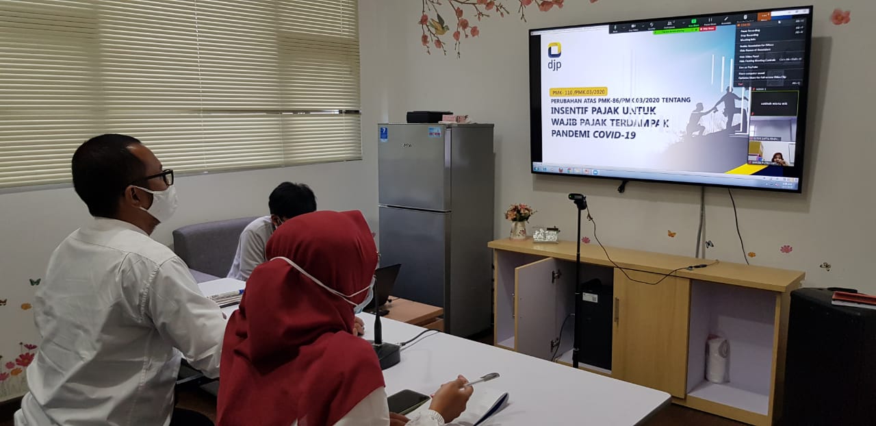 Kantor Pelayanan Pajak (KPP) Pratama Surakarta menyelenggarakan Sosialisasi Insentif Pajak untuk Wajib Pajak Terdampak Pandemi Covid-19 secara daring melalui media telekonferensi di ruang kelas pajak KPP Pratama Surakarta (Jumat, 9/10). Sosialisasi ini diadakan selama lima hari sejak Senin, 5 Oktorber 2020.