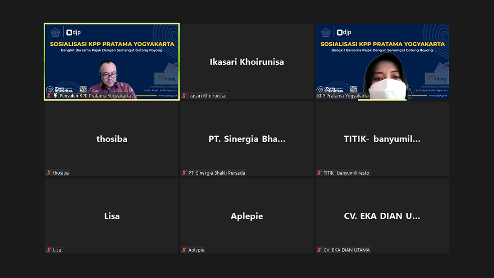 Kantor Pelayanan Pajak (KPP) Pratama Yogyakarta mengadakan sosialisasi mengenai aspek perpajakan atas Jasa Konstruksi menggunakan aplikasi zoom meeting (Selasa, 12/04).
