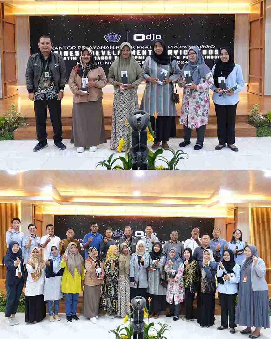 Untuk mendorong pengembangan Usaha Mikro, Kecil, dan Menengah (UMKM), Kantor Pelayanan Pajak (KPP) Pratama Probolinggo rangkul pelaku UMKM melalui kegiatan Business Development Services (BDS) yang bertempat di Aula KPP Pratama Probolinggo, Kota Probolinggo (Selasa, 10/12). Kegiatan ini diikuti oleh 24 pelaku UMKM yang terafiliasi dengan Himpunan Pengusaha Muda Indonesia (HIPMI) Kabupaten Probolinggo.