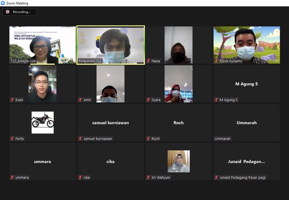Kantor Pajak Pratama (KPP) Samarinda Ilir menyelenggarakan kegiatan Kelas Pajak dengan tema Hak dan Kewajiban Wajib Pajak Orang Pribadi yang diikuti oleh wajib pajak Program Pemulihan Ekonomi Nasional (PEN) secara daring di Kota Samarinda (Senin, 31/8). Kegiatan ini dipandu oleh dua narasumber yang merupakan Fungsional Penyuluh KPP Pratama Samarinda Ilir, yakni Bapak Muhammad Ihsan Ahmad dan Ibu Amelia Liza.