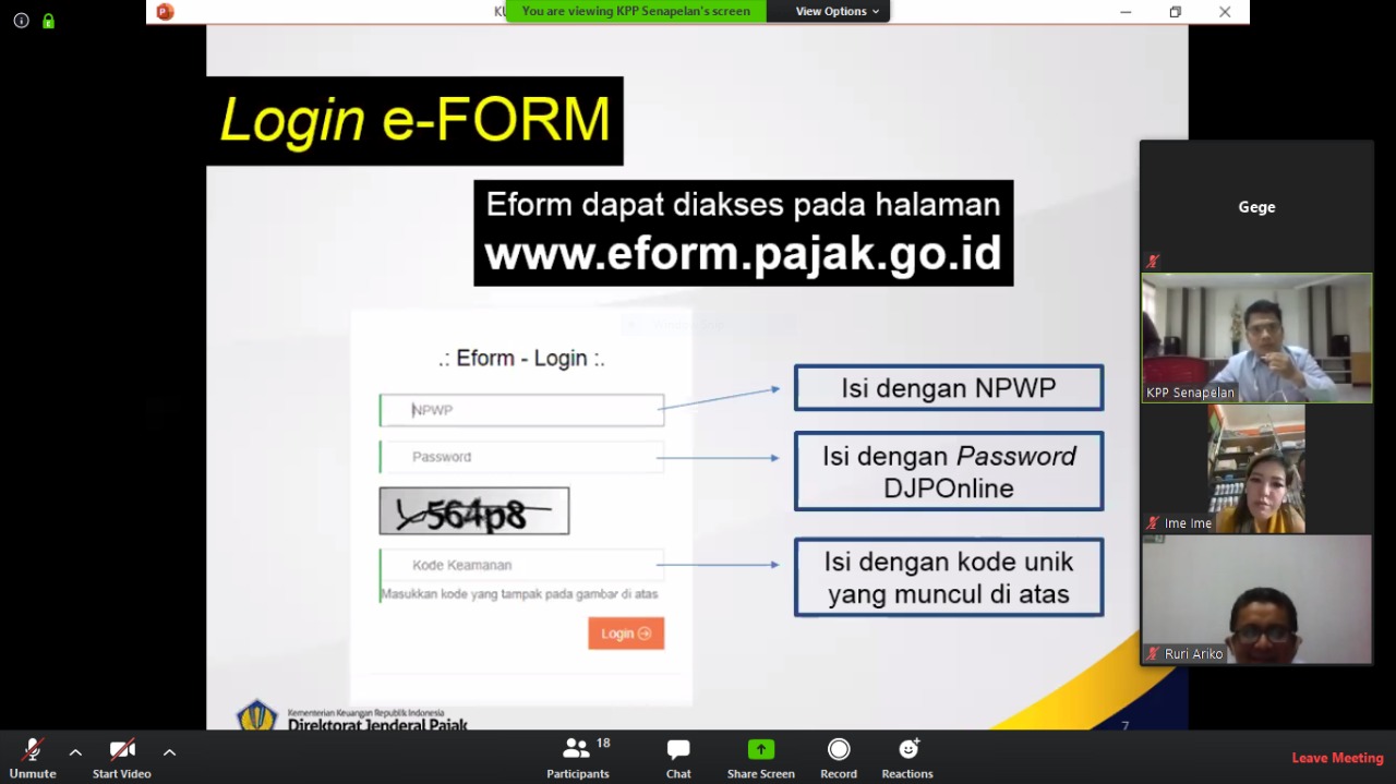 Kegiatan ini diadakan sebagai bentuk penyuluhan di tengah pembatasan sosial yang diterapkan dalam upaya penanggulangan penyebaran wabah Covid-19 di tanah air. Ada pun serangkaian kegiatan ini menjadi sarana bagi wajib pajak untuk mendapat edukasi dan bimbingan terkait tata cara pelaporan SPT tahunan menggunakan e-Form.