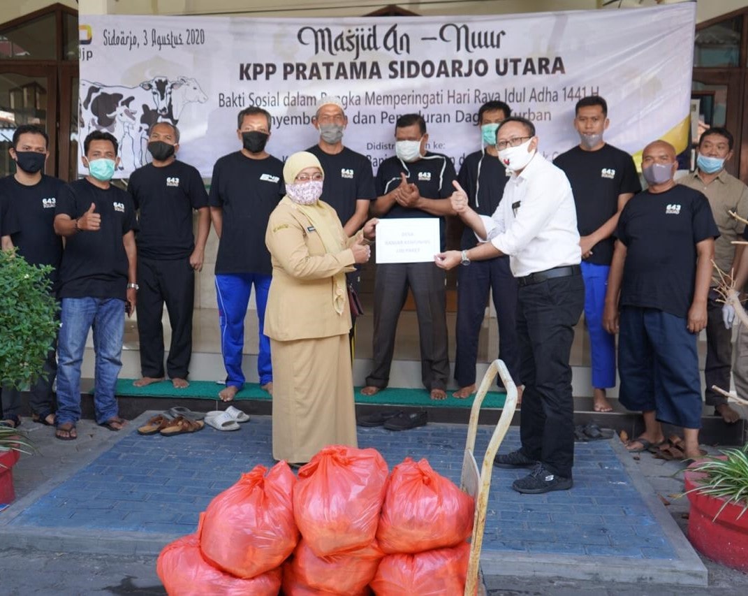 KPP Pratama Sidoarjo Utara mengadakan bakti sosial dalam rangka memperingati Hari Raya Iduladha 1441 H dengan menyalurkan daging kurban kepada warga sekitar dan tiga desa di wilayah kerja KPP Pratama Sidoarjo Utara (Senin, 3/8). Ada empat ekor sapi yang disembelih di halaman masjid An-Nuur KPP Pratama Sidoarjo Utara, yang merupakan sumbangan dari para pegawai yang berkurban.