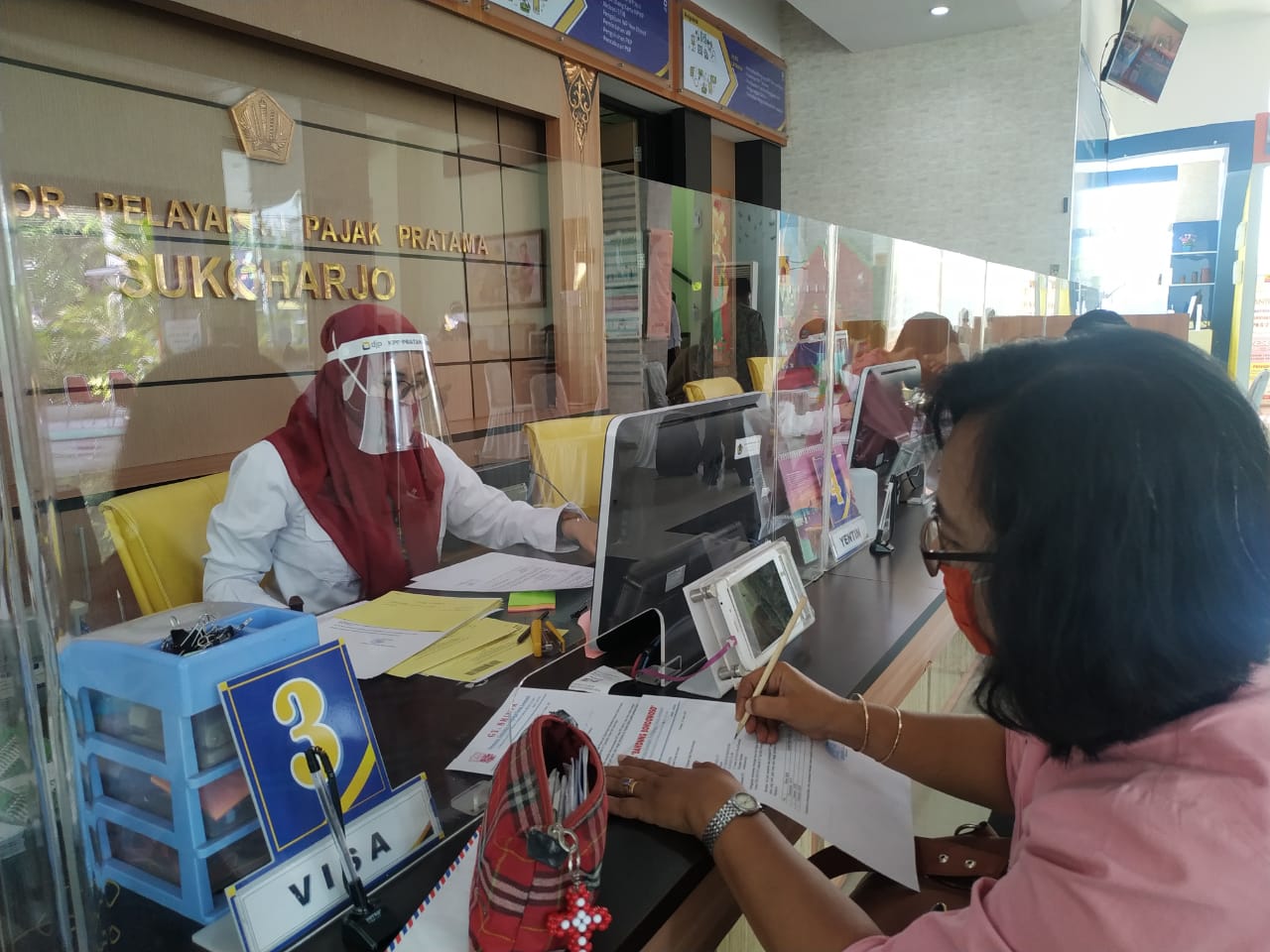 KPP Pratama Sukoharjo menerapkan protokol kesehatan Covid-19 dalam normal baru layanan tatap muka di TPT KPP Pratama Sukoharjo (Senin, 15/06). Penerapan protokol kesehatan Covid-19 merupakan wujud pengendalian internal yang dilakukan KPP Pratama Sukoharjo dalam memberikan layanan tatap muka kepada wajib pajak dengan tetap memperhatikan kesehatan lingkungan kantor.