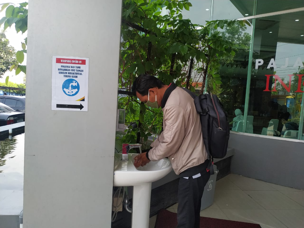 Protokol pertama yang diterapkan adalah kewajiban mencuci tangan bagi pegawai dan wajib pajak sebelum beraktivitas. Selanjutnya, pegawai dan wajib pajak akan diperiksa suhu tubuhnya untuk menentukan apakah yang bersangkutan diizinkan memasuki kantor atau tidak. Pegawai dan wajib pajak yang diperbolehkan memasuki kantor pajak adalah pegawai dan wajib pajak dengan suhu tubuh di bawah 38oC sedangkan pegawai dan wajib pajak yang memiliki suhu di atas 38oC tidak diizinkan memasuki kantor pajak.