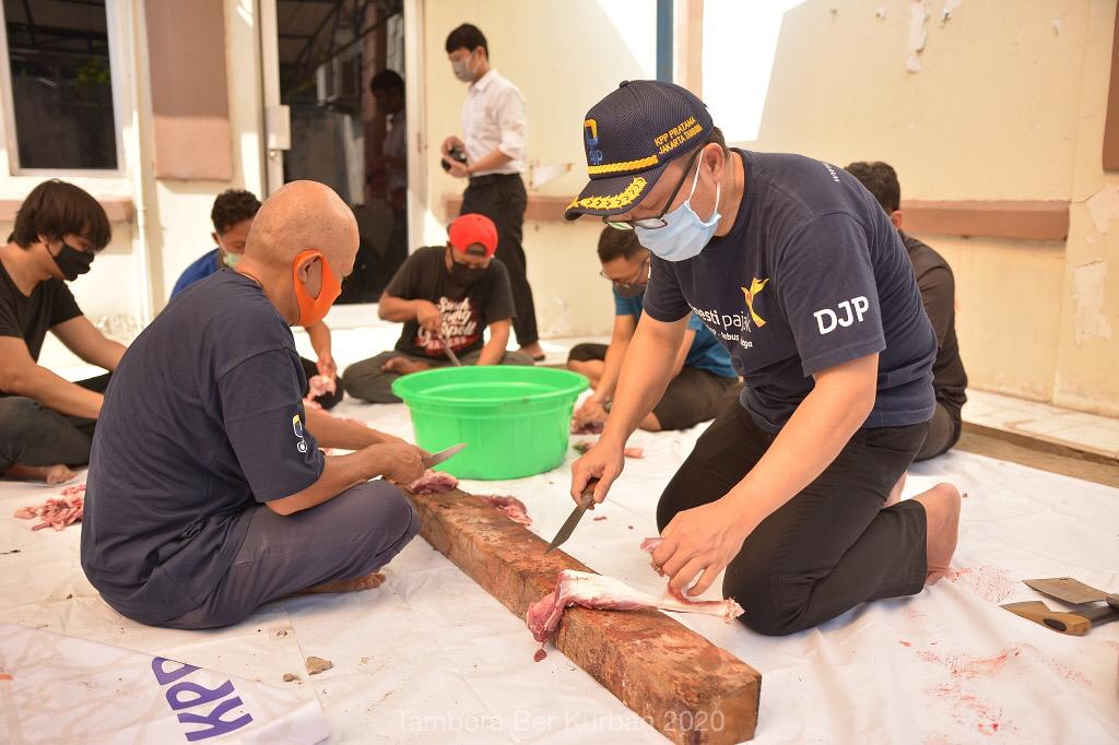 KPP Pratama Jakarta Tambora bersama DKM Masjid Al-Ikhlas menyelenggarakan penyembelihan hewan kurban dalam rangka memperingati Hari Raya Iduladha 1441 Hijriah. Proses penyembelihan dan pembagian hewan kurban dilaksanakan di lapangan upacara KPP Tambora (Senin, 3/8).
