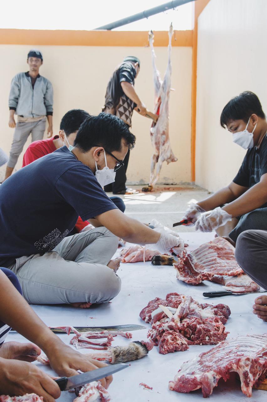 Penyembelihan dilaksanakan di area parkir belakang gedung KPP Pratama TBK. Pegawai KPP Pratama TBK turut serta berkontribusi membantu jalannya kegiatan ini dari mulai penyembelihan hewan, pemotongan, penimbangan, pendistribusian daging ke warga sekitar dan tentunya dengan tetap menerapkan protokol kesehatan.