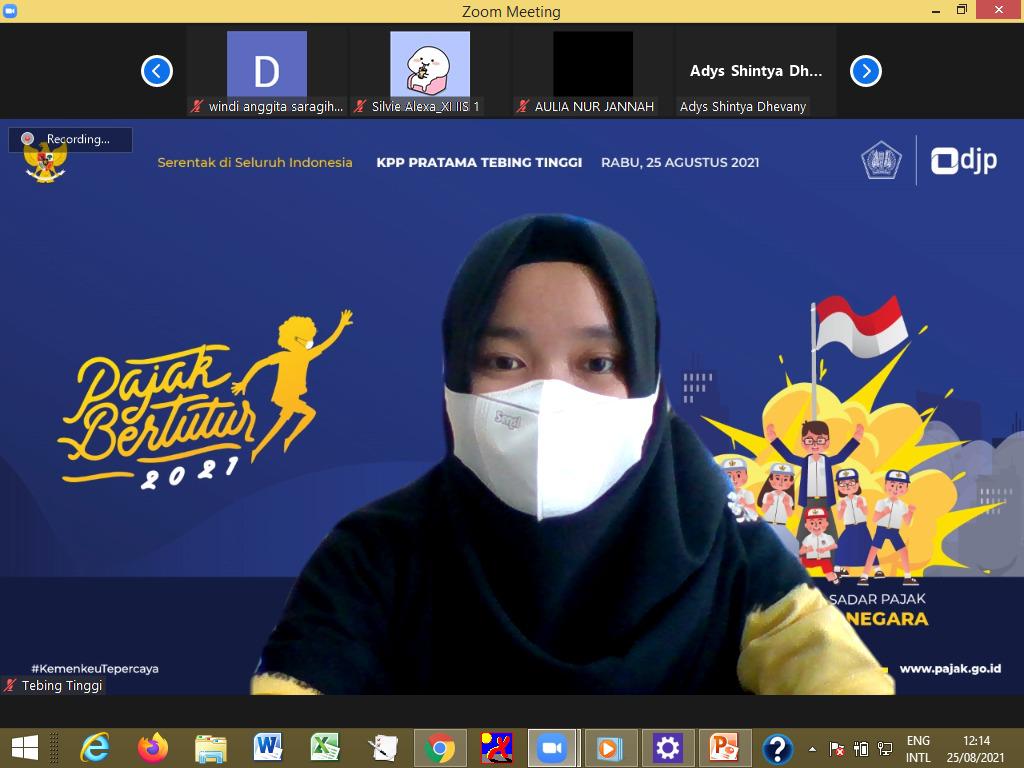 Kantor Pelayanan Pajak (KPP) Pratama Tebing Tinggi melaksanakan Pajak Bertutur 2021 bersama siswa-siswi SMA Swasta Ir. H. Djuanda Tebing Tinggi secara daring di Kota Tebing Tinggi (Rabu, 25/8). Pajak Bertutur merupakan salah satu kegiatan untuk menyukseskan program Inklusi Kesadaran Pajak milik Direktorat Jenderal Pajak (DJP) yang bertujuan untuk menyampaikan arti pentingnya pajak bagi Negara Kesatuan Repbulik Indoneisa (NKRI).