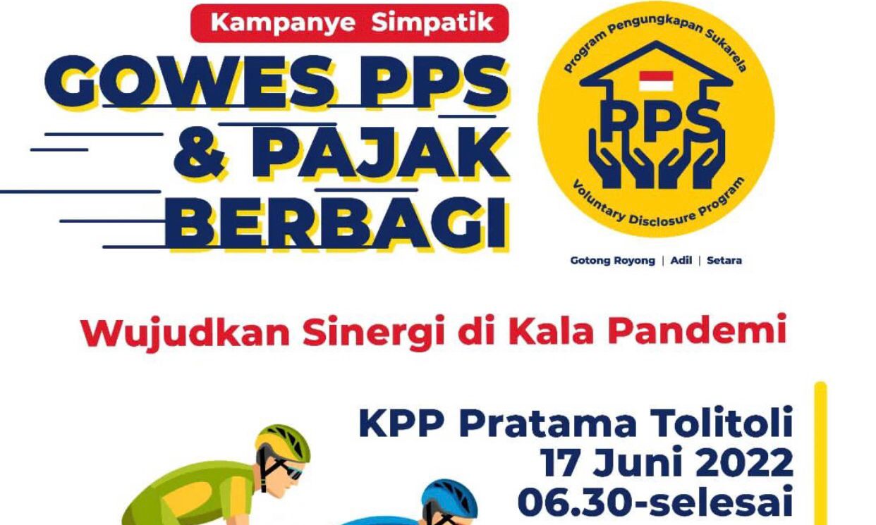 Kantor Pelayanan Pajak (KPP) Pratama Tolitoli melaksanakan kegiatan kampanye simpatik terkait Program Pengungkapan Sukarela (PPS) dalam bentuk Gowes PPS dan Pajak Berbagi di sepanjang Jl. Sultan Hasanuddin, Jl. Magamu, Pasar Susumbolan, Pelabuhan Hi. Hayyun dan jl. Moh. Hatta, Kabupaten Tolitoli, Sulawesi Tengah (Jumat, 17/6). Sebelum melaksanakan kegiatan kampanye simpatik, seluruh pegawai KPP Pratama Tolitoli melakukan pengarahan dan penjelasan pukul 06.30 WITA yang dipimpin langsung oleh Heri Widiyanto selaku Kepala KPP Pratama Tolitoli.