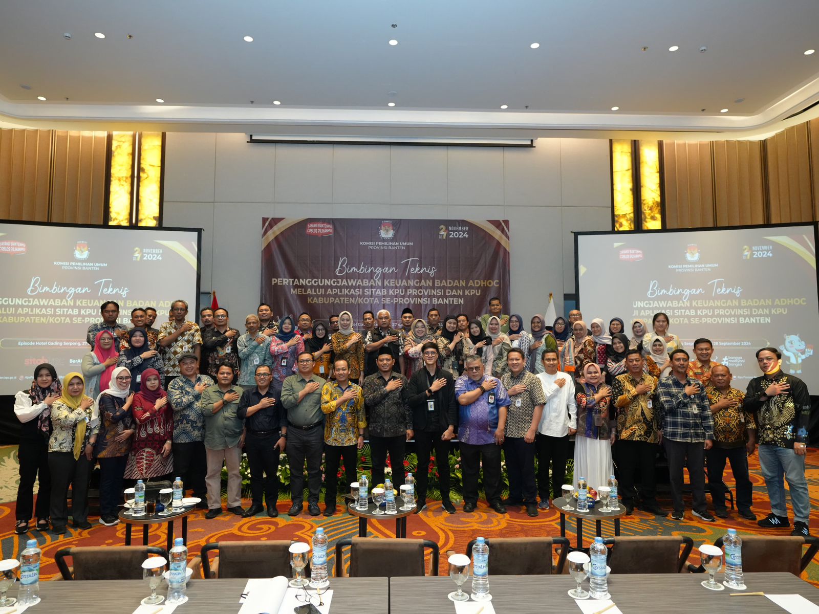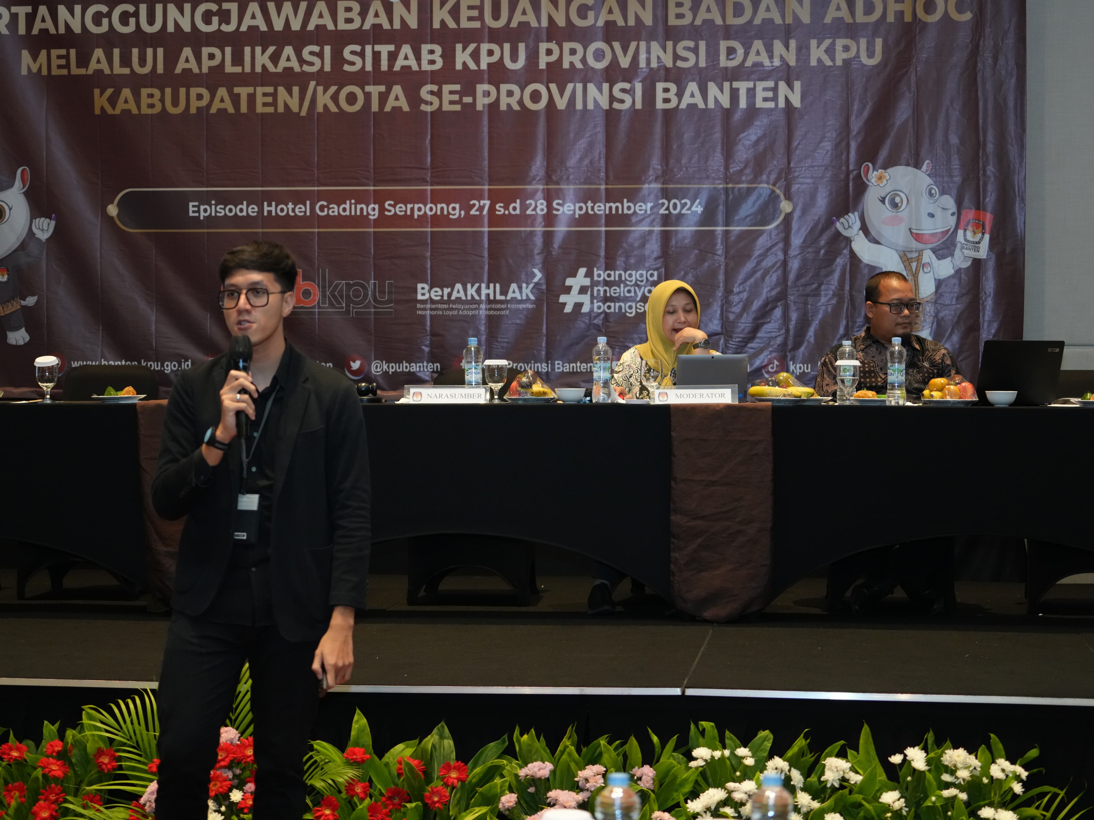 Komisi Pemilihan Umum (KPU) Provinsi Banten menggelar Bimbingan Teknis (Bimtek) Pertanggungjawaban Keuangan Badan Adhoc Melalui Aplikasi Sitab. Kegiatan yang berlangsung selama dua hari di Episode Hotel Gading Serpong, Jalan Gading Serpong Boulevard Barat No 7 ini bertujuan untuk meningkatkan kapasitas pegawai KPU dalam mengelola keuangan badan adhoc serta mendorong kepatuhan perpajakan (Jumat, 27/9).