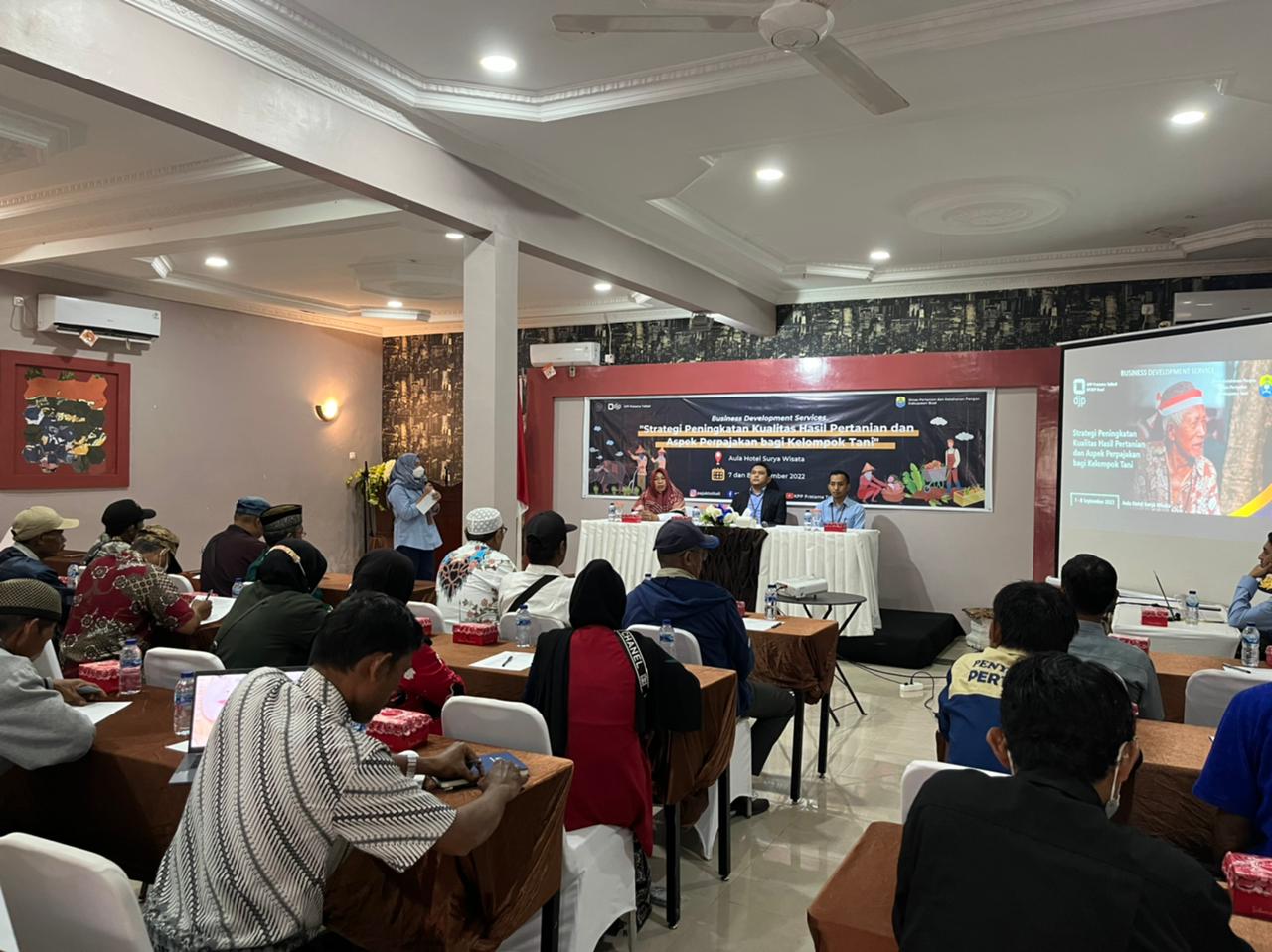 Kantor Pelayanan Pajak (KPP) Pratama Tolitoli bersama Kantor Pelayanan, Penyuluhan, dan Konsultasi Perpajakan (KP2KP) Buol menyelenggarakan kegiatan Business Develompent Service (BDS) bertempat di Aula Hotel Surya Wisata, Kabupaten Buol (Kamis, 8/9). Kegiatan yang dihadiri oleh kelompok tani ini bertujuan untuk memberikan pemahaman terkait hak dan kewajiban perpajakan serta pembinaan mengenai kegiatan usaha pertanian.
