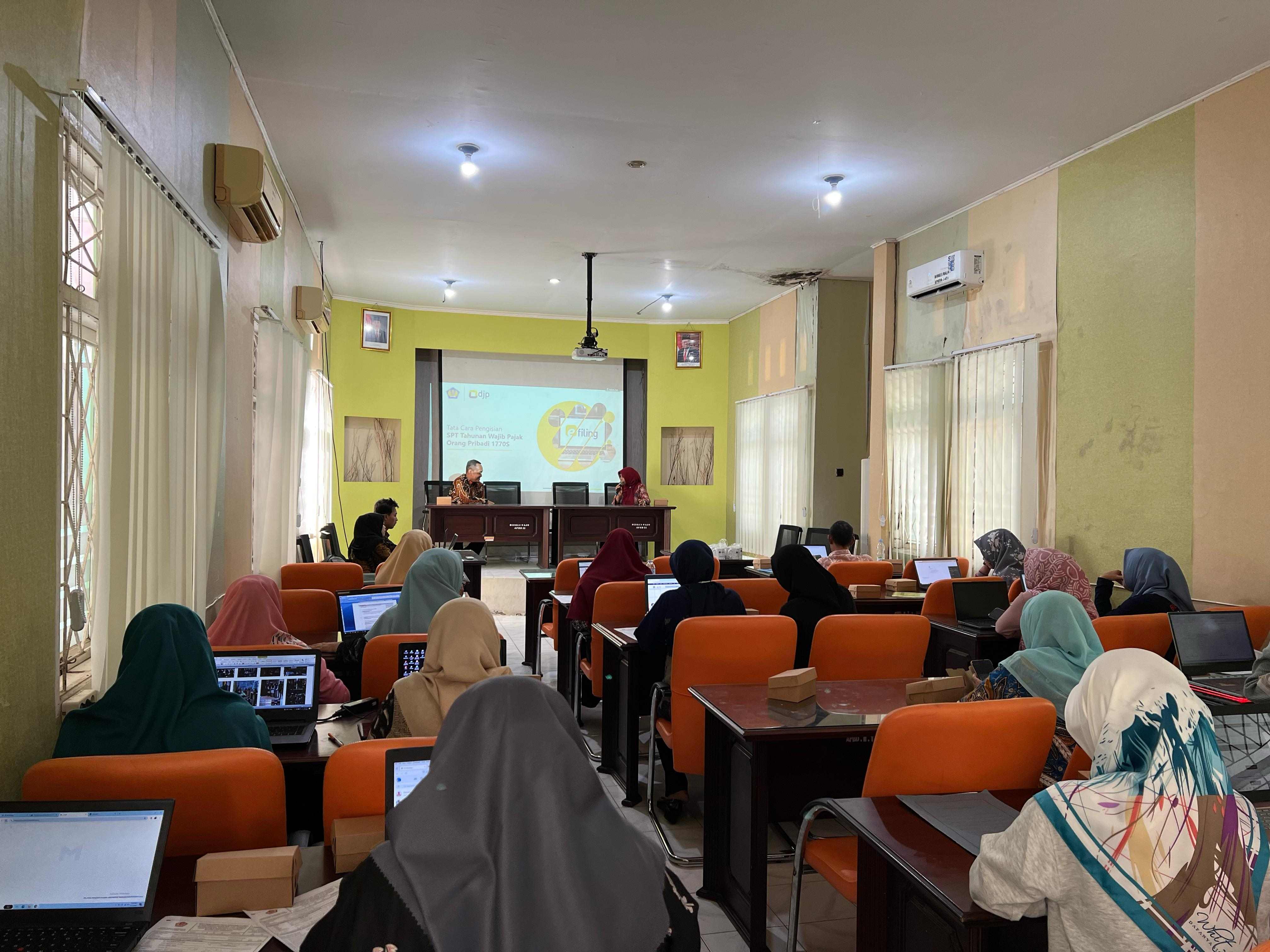 Dalam kesempatan tersebut, Hilal Farohi, selaku pemateri menjelaskan tata cara pelaporan SPT Tahunan 1770S kepada peserta yang hadir. “Pelaporan SPT Tahunan sifatnya wajib, karena Bapak dan Ibu mendapatkan penghasilan dari negara dan sudah dipotong setiap bulannya. Oleh karena itu, kami akan memberikan asisteni agar kedepannya pelaporan SPT Tahunan dapat dilakukan secara mandiri kapanpun dan di manapun,” jelas Hilal.