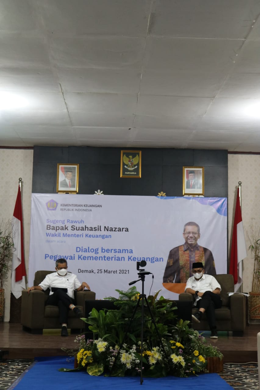 Wakil Menteri Keuangan Suahazil Nazara melakukan kunjungan kerja ke Jawa Tengah dalam acara Dialog bersama Pegawai Kementerian Keuangan di KPP Pratama Demak (Kamis 25/3).