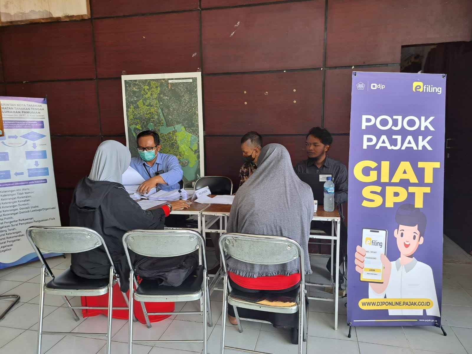Petugas Kantor Pelayanan Pajak (KPP) Pratama Tarakan mengadakan kegiatan pemberian layanan bergerak yang berlangsung di Kantor Kelurahan Pamusian, Tarakan Tengah, Kota Tarakan (Selasa, 5/9). Dalam kegiatan pelayanan bergerak ini, KPP Pratama Tarakan menugaskan lima orang pegawainya, Maswanah, Surya, Halim, Elis dan Hanafi untuk memberikan pelayanan kepada masyarakat Kelurahan Pamusian dan sekitarnya.