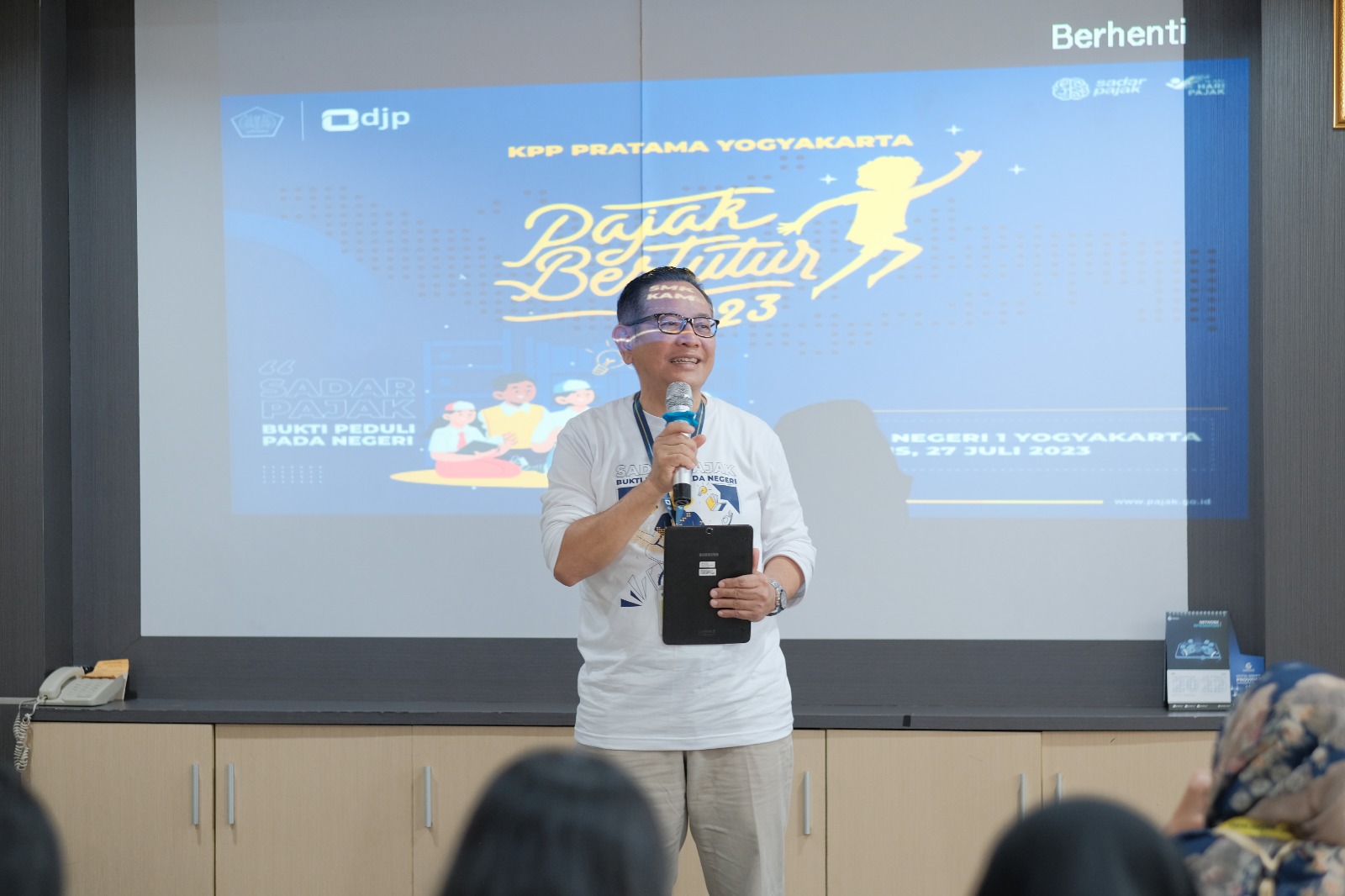 Kantor Pelayanan Pajak (KPP) Pratama Yogyakarta mengadakan Pajak Bertutur (Patur) 2023 di SMKN 1 Yogyakarta, D.I. Yogyakarta (Kamis, 27/7). Sebanyak 63 siswa-siswi SMK kelas XI jurusan akuntansi hadir mengikuti kegiatan edukasi yang bertemakan "Sadar Pajak, Bukti Peduli pada Negeri".