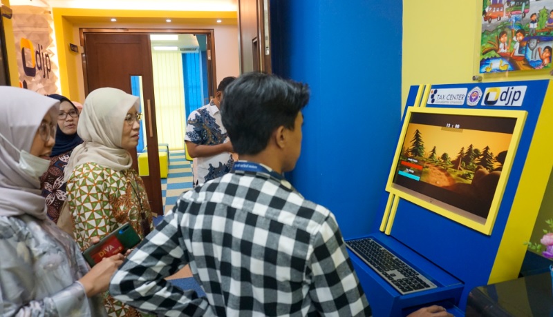 Dalam kunjungan tersebut, Roos mencoba berbagai aplikasi yang dibuat oleh tim TC UG. Mulai dari Augmented Reality tentang pajak, kuis pajak hingga buku-buku bersuara yang dibuat oleh relawan pajak.