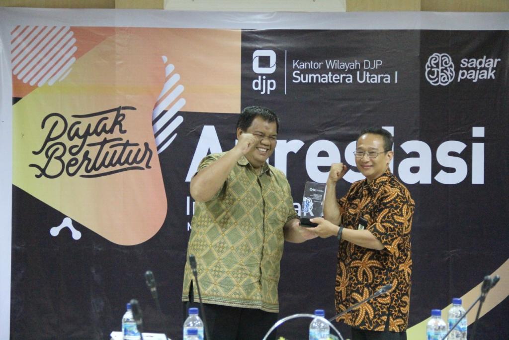 Kegiatan Pajak Bertutur 2019 ini dilaksanakan dalam bentuk pemberian apresiasi kepada Tax Center yang telah membantu dalam upaya menumbuhkan kesadaran pajak di perguruan tinggi. Apresiasi diberikan langsung oleh Kepala Seksi Bimbingan Penyuluhan dan Pengelolaan Dokumen Kanwil DJP Sumatera Utara I Soni Hermawan. Melalui kegiatan ini diharapkan kesadaran pajak di perguruan tinggi bisa semakin meningkat.