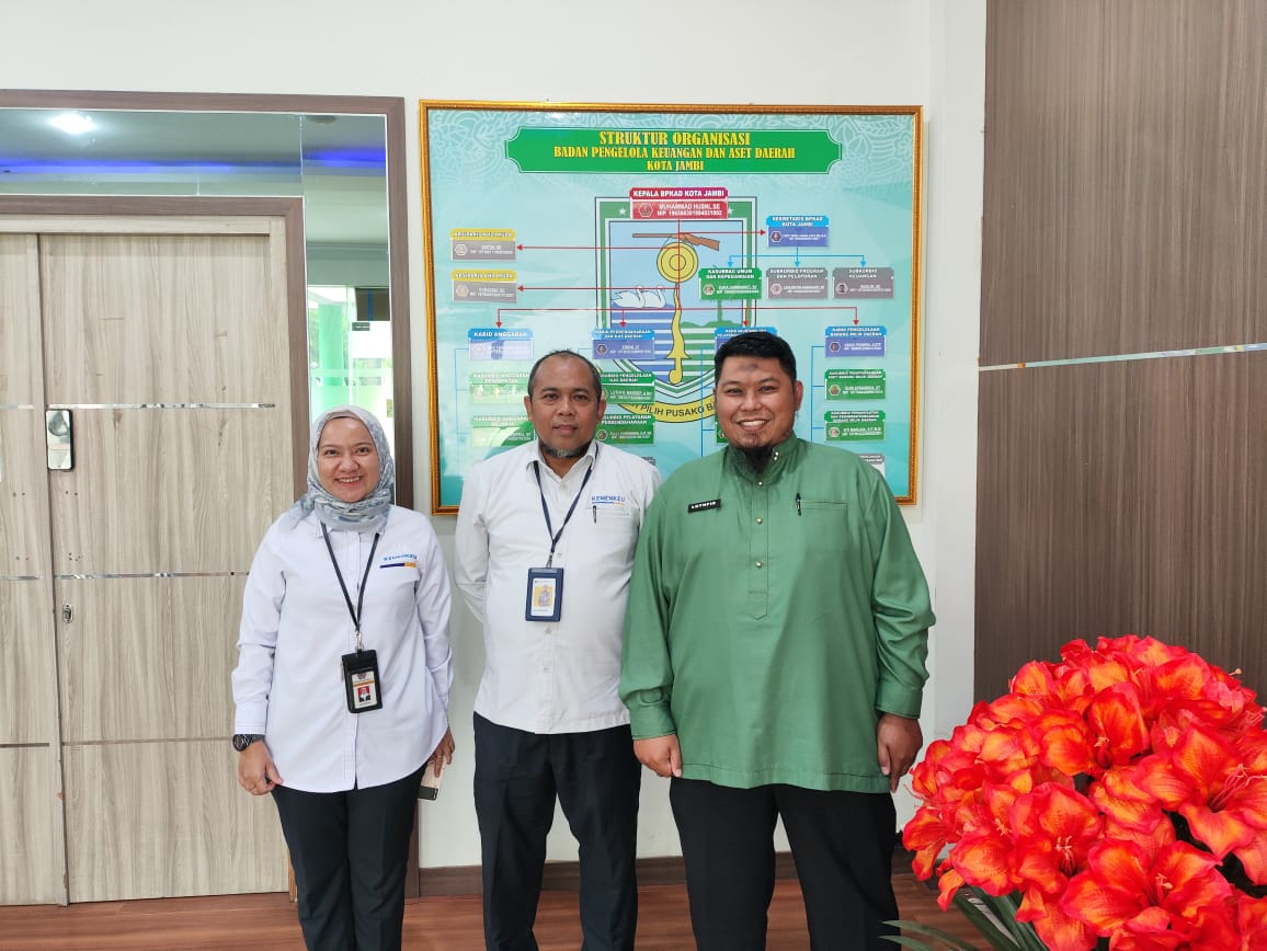 Kunjungan kali ini dipimpin oleh Kepala Seksi Pelayanan Irma Miranti dan disambut oleh Kepala Sub Bidang Pengelolaan Kas Daerah BPKAD Kota Jambi Luthfie Maroef. Pembahasan pada koordinasi ini terkait rencana diadakannya kegiatan bimbingan teknis berupa kelas pajak untuk pengelola keuangan daerah yang berada dalam naungan BPKAD Kota Jambi.