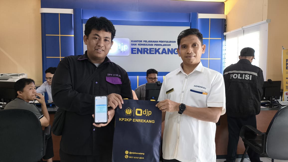 Kantor Pelayanan, Penyuluhan, dan Konsultasi Perpajakan (KP2KP) Enrekang memberikan apresiasi kepada wajib pajak yang patuh melalui pemberian apresiasi kepada beberapa wajib pajak yang melaporkan Surat Pemberitahuan (SPT) Tahunan pada awal tahun di Kabupaten Enrekang (Senin, 6/1). Pemberian apresiasi kepada wajib pajak ini diserahkan langsung oleh Sudirman selaku Kepala KP2KP Enrekang.