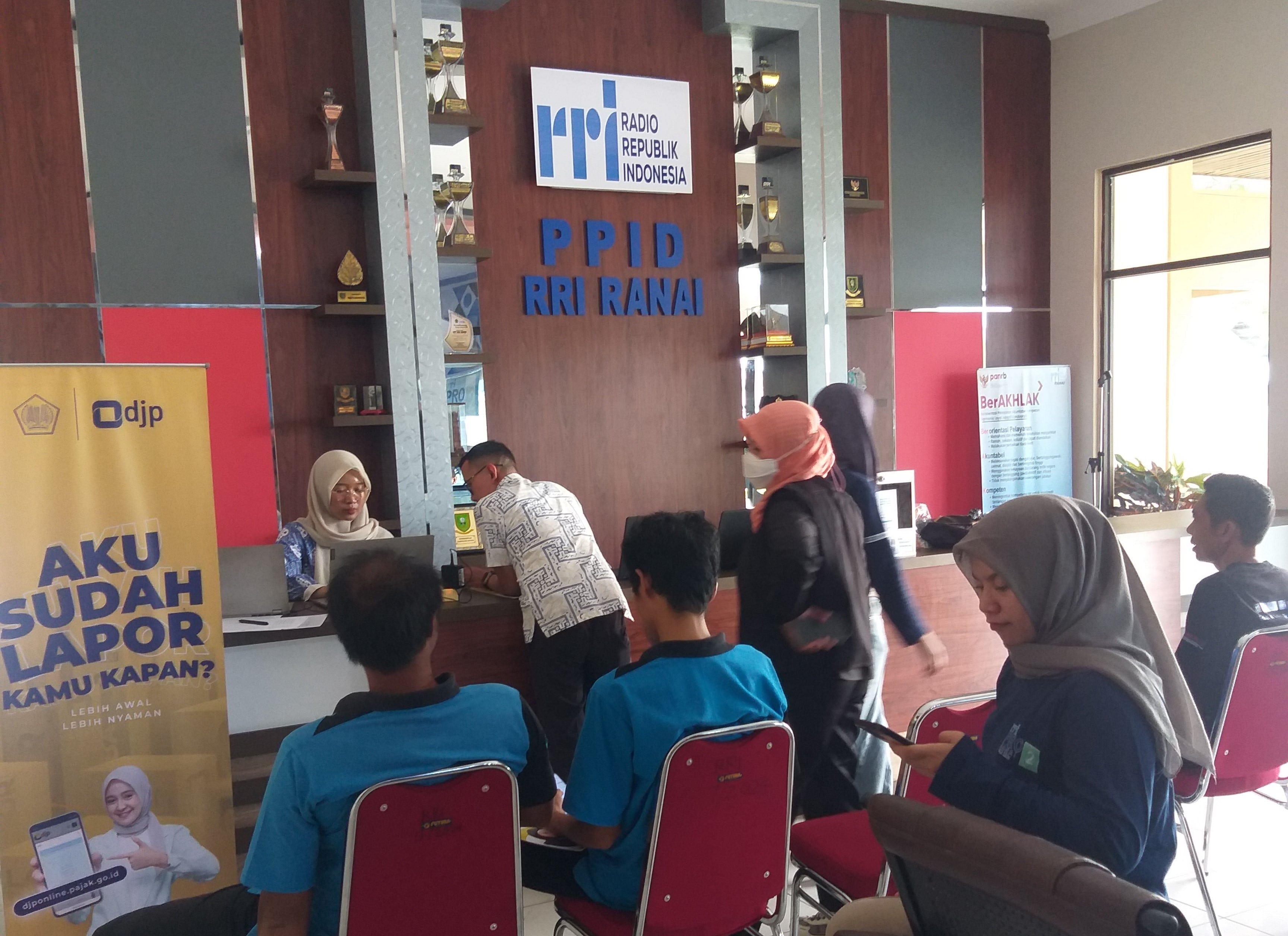 Kantor Pelayanan, Penyuluhan, dan Konsultasi Perpajakan (KP2KP) Ranai membuka pojok pajak di Lembaga Penyiaran Publik Radio Republik Indonesia (LPP RRI) Ranai, Sepempang, Ranai, Kabupaten Natuna, Provinsi Kepulauan Riau (Jumat, 21/2). Petugas KP2KP Ranai memberikan layanan asistensi pelaporan Surat Pemberitahuan (SPT) Tahunan 2024 melalui e-Filing kepada seluruh pegawai LPP RRI Ranai.
