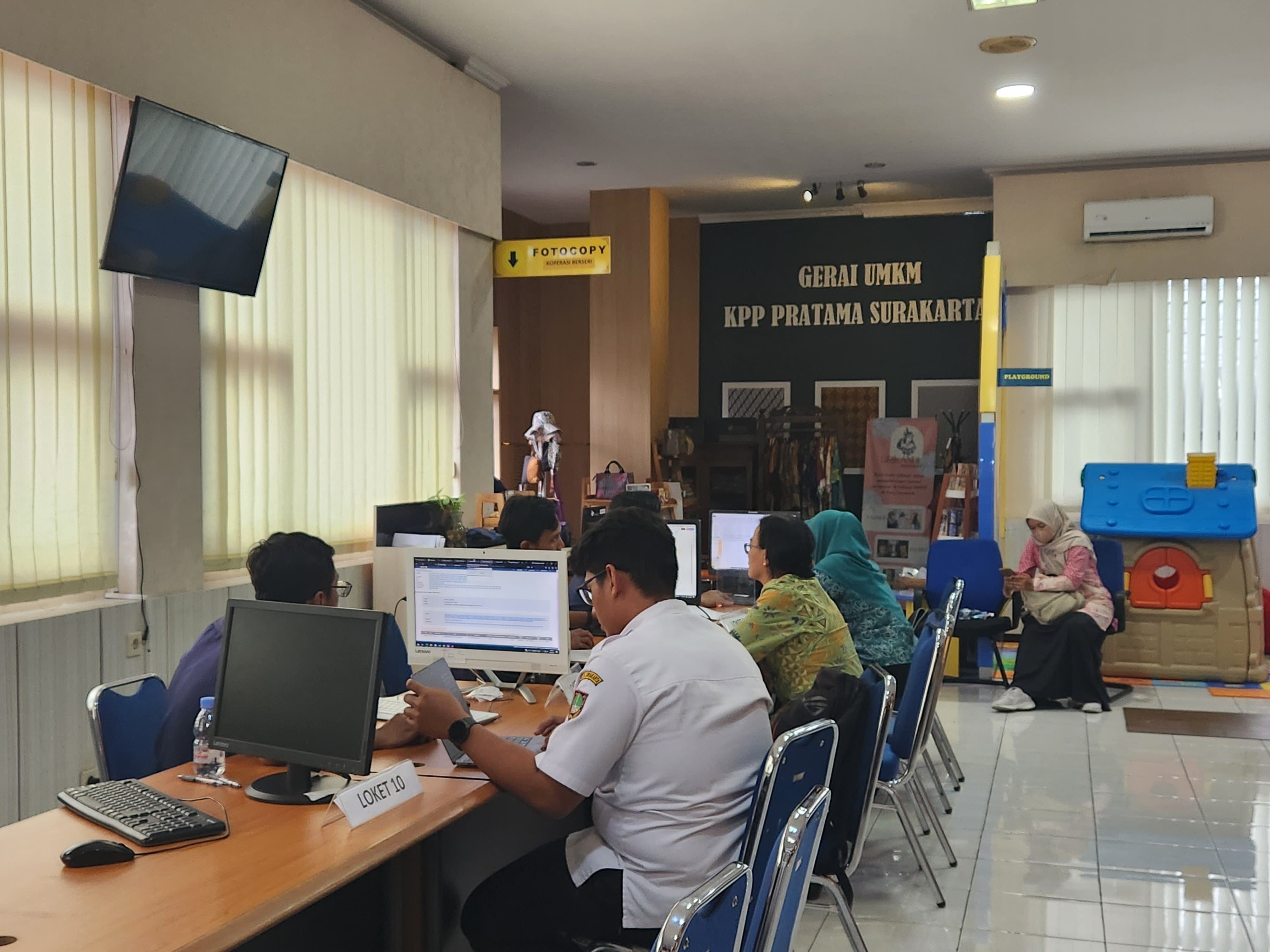 Pada hari terakhir batas waktu pelaporan Surat Pemberitahuan (SPT) Tahunan Pajak Penghasilan (PPh) Badan, Kantor Pelayanan Pajak (KPP) Pratama Surakarta dipenuhi oleh Wajib Pajak Badan di Kota Surakarta (Rabu, 30/4). Sejak sebelum antrean dibuka, sejumlah wajib pajak sudah memadati kantor pajak dengan harapan dapat mengurangi waktu antre jika datang pada siang hari yang biasanya lebih ramai.