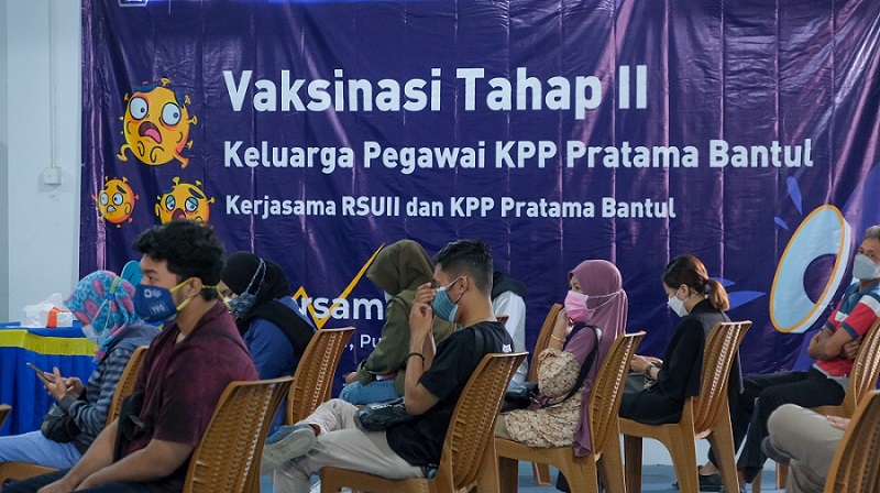Kantor Pelayanan Pajak (KPP) Pratama Bantul mengadakan vaksinasi Covid-19 untuk para pegawai dan keluarganya di Basement KPP Pratama Bantul, Bantul (Selasa, 10/8). Pemberian vaksin ini merupakan lanjutan dari vaksinasi tahap I pada Bulan Juli lalu. Kegiatan ini merupakan hasil kerja sama dengan Rumah Sakit Universitas Islam Indonesia yang beralamat di Jalan Srandakan Km 5,5 Wirirejo, Pandak, Kabupaten Bantul.