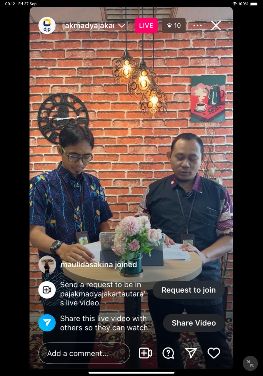 Sesi live berdurasi 33 menit, Penyuluh KPP Madya Dua Jakarta Utara berharap dengan materi ini masyarakat teredukasi dan menarik minat beli masyarakat atas kendaraan bermotor listrik berbasis baterai.
