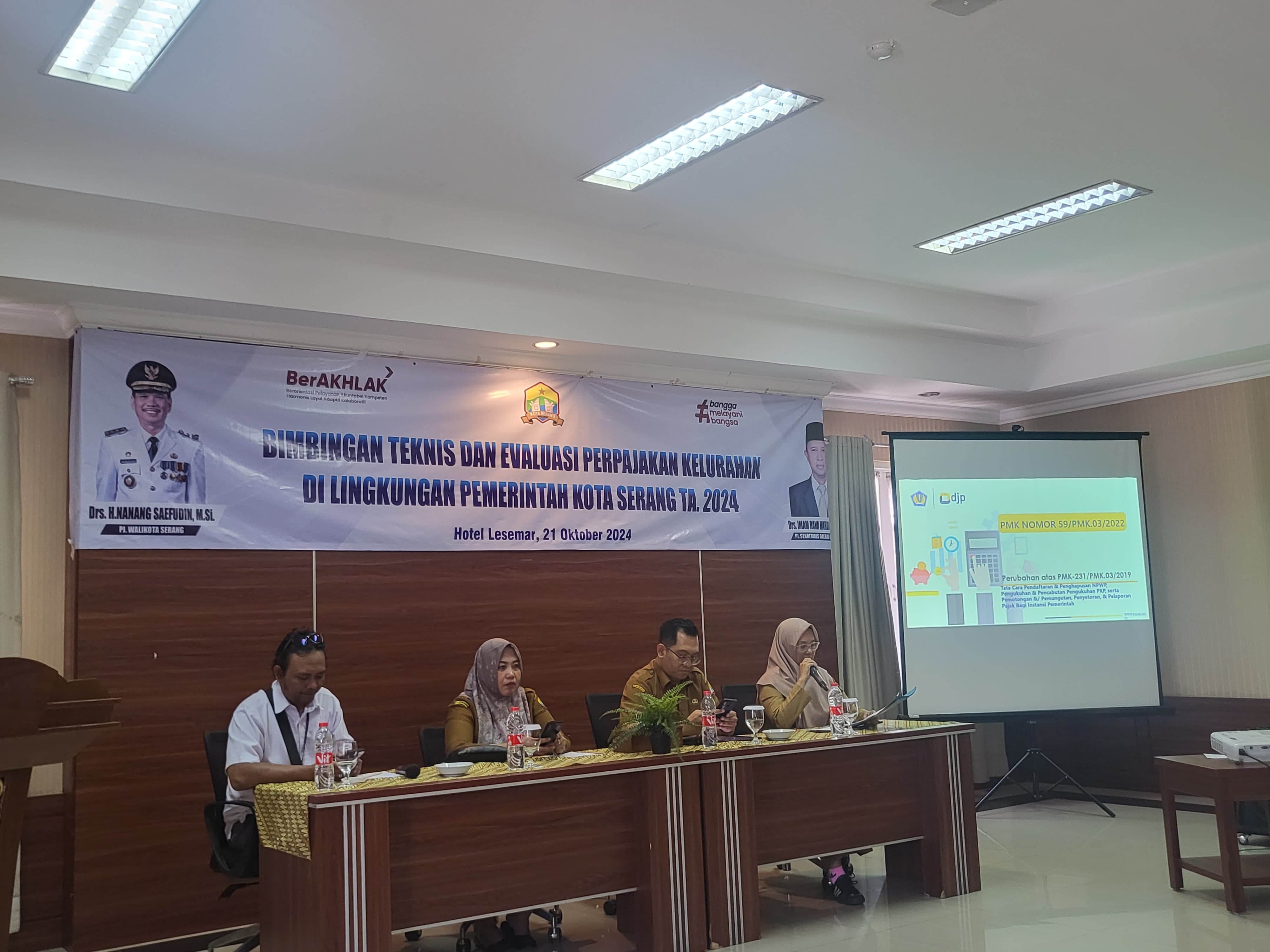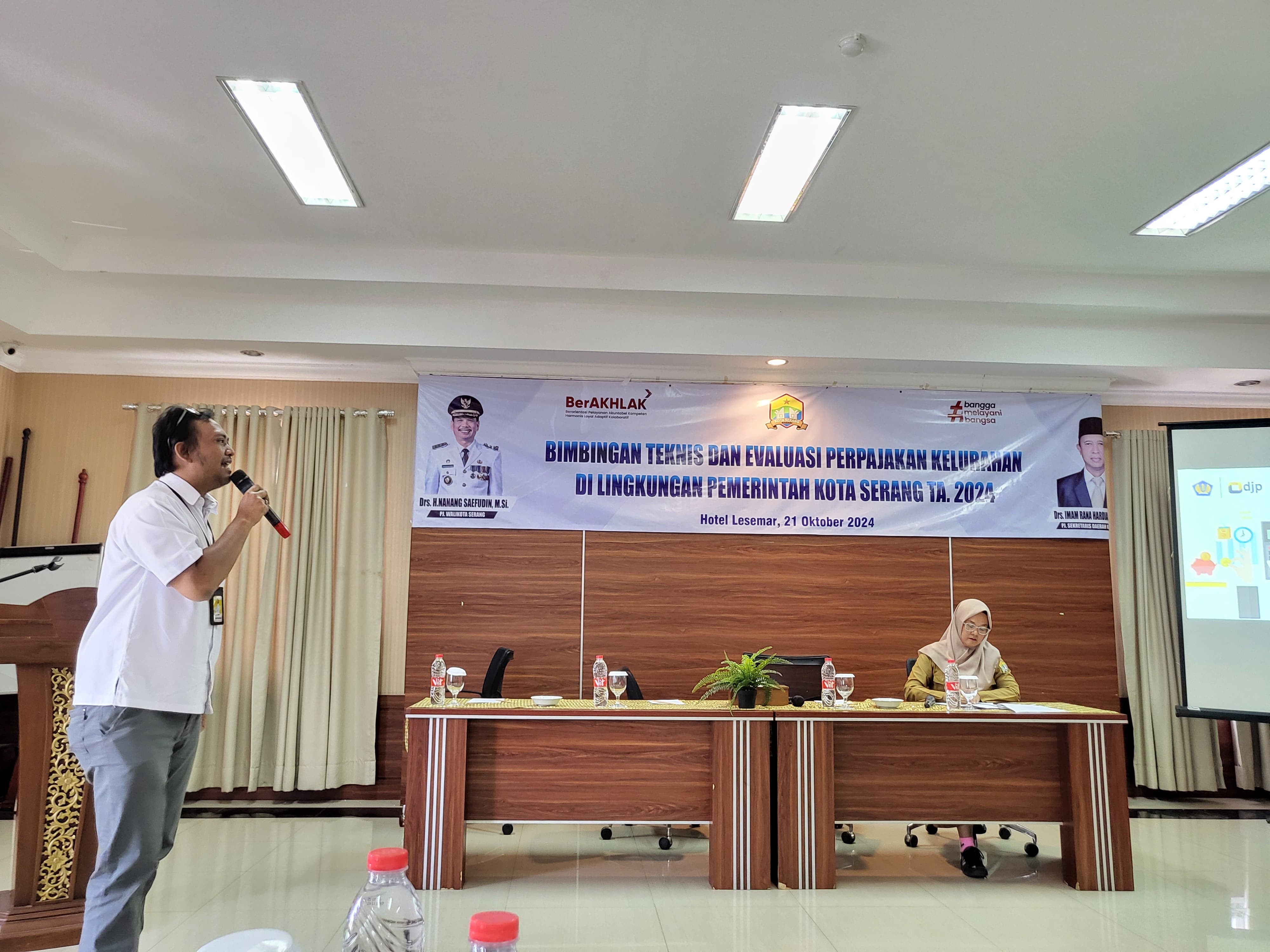 Kantor Pelayanan Pajak (KPP) Pratama Serang Barat memberikan edukasi perpajakan kepada para Aparatur Sipil Negara (ASN) di lingkungan Pemerintah Kota Serang dalam Bimbingan Teknis dan Evaluasi Perpajakan Kelurahan yang diselenggarakan oleh Badan Pengelolaan Keuangan dan Aset Daerah (BPKAD) Kota Serang di Le Semar Hotel, Kota Serang (Rabu, 6/11).