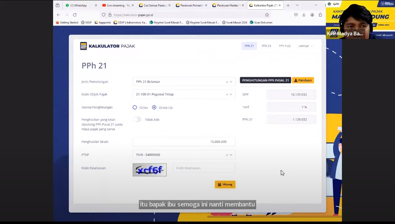 “Sekarang untuk perhitungan pajak, di pajak.go.id telah disediakan fitur Kalkulator Pajak,” ujar Penyuluh Pajak Kantor Pelayanan Pajak (KPP) Madya Bandung Sofri Abdul Rochim dalam kegiatan kelas pajak yang digelar secara daring melalui Zoom Meeting dan kanal YouTube KPP Madya Bandung di Bandung (Rabu, 24/7).