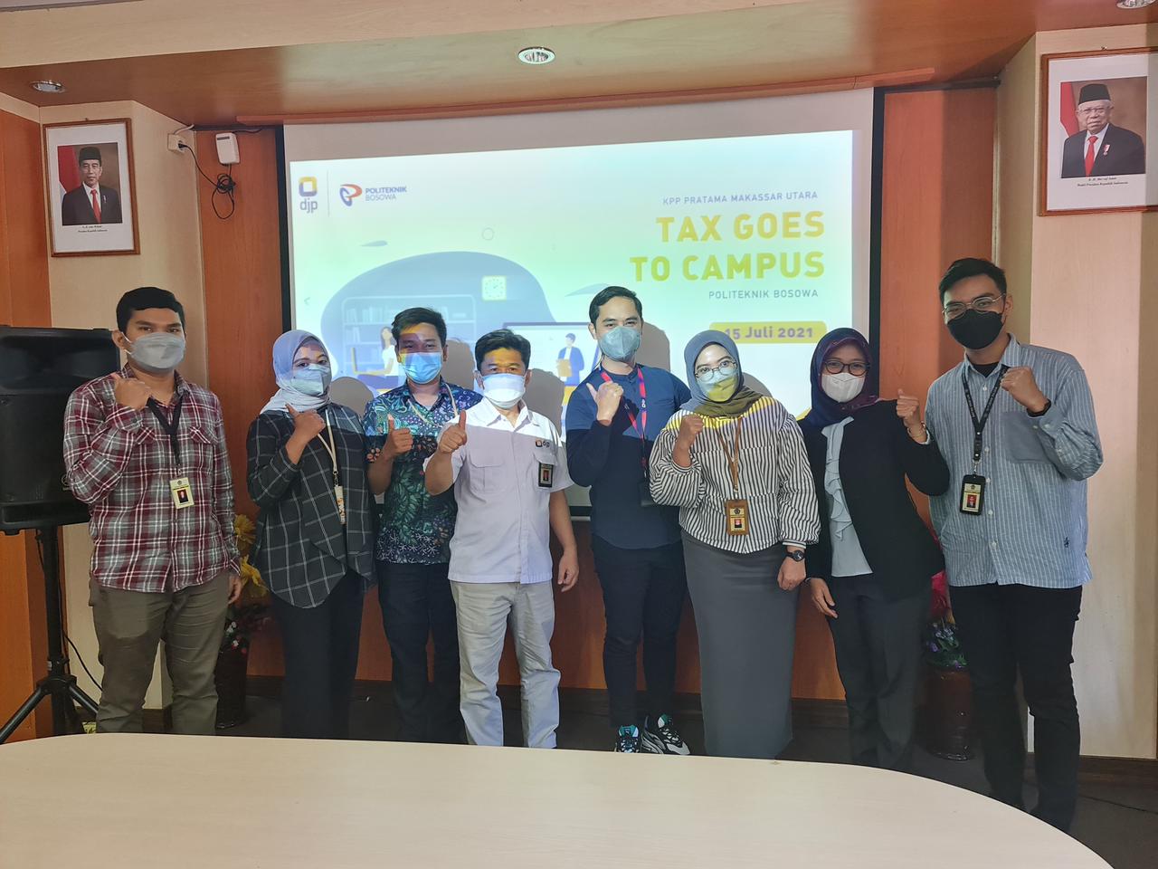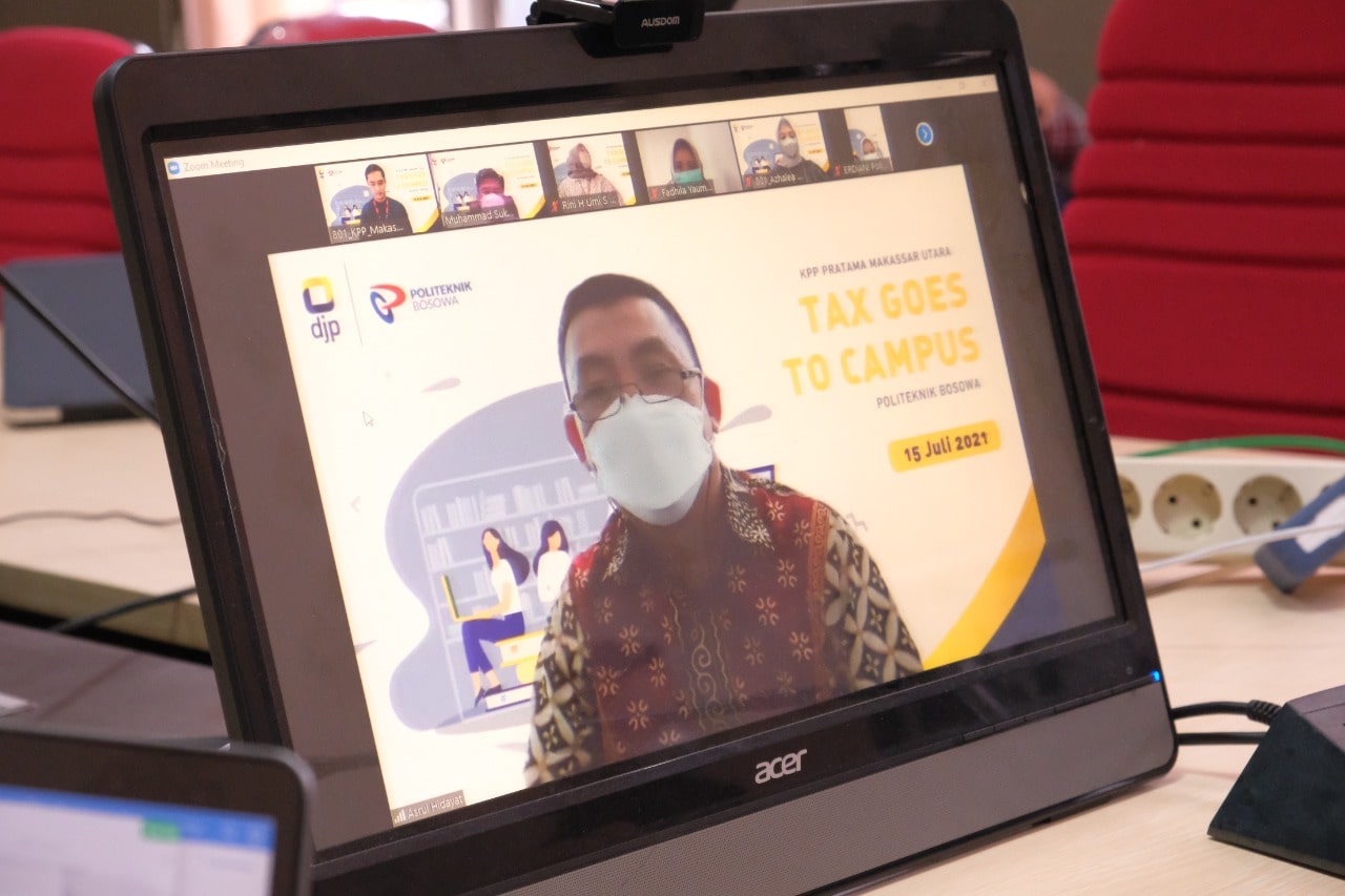 Kantor Pelayanan Pajak (KPP) Pratama Makassar Utara melaksanakan program inklusi kesadaran pajak melalui kegiatan Tax Goes to Campus (TGTC) bersama Politeknik Bosowa Makassar (Kamis, 15/7). Kegiatan ini dilangsungkan secara daring via aplikasi Zoom Meeting di ruang rapat KPP Makassar Utara, Kota Makassar.
