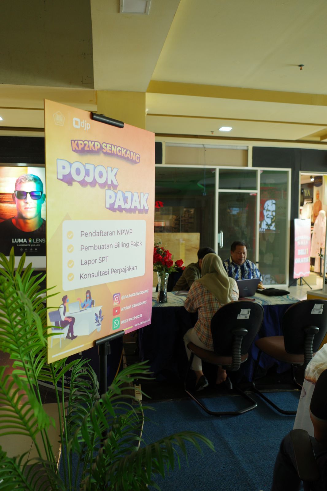 Kantor Pelayanan, Penyuluhan, dan Konsultasi Perpajakan (KP2KP) Sengkang menyelenggarakan kegiatan pojok pajak yang berlokasi di Sallo Mal, Jalan H. Bahe, Tempe, Danau Tempe, Kabupaten Wajo, Sulawesi Selatan (Sabtu,14/9). Rangkaian kegiatan pojok pajak tersebut dilaksanakan selama dua hari pada tanggal 14 dan 15 September 2024 dimulai pada pukul 10.00 WITA hingga pukul 20.00 WITA.