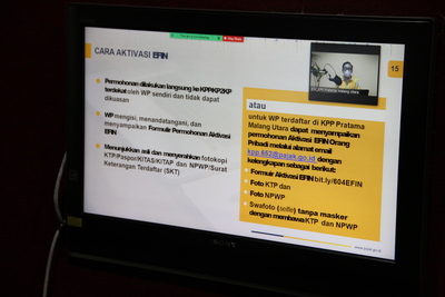 Pada kelas pajak juga disampaikan bahwa telat pelaporan dapat memicu terbitnya sanksi administrasi sebesar Rp. 100.000 untuk SPT Tahunan orang pribadi dan sebesar Rp. 1.000.000 untuk SPT Tahunan Badan. Di akhir sesi, narasumber juga membagikan kontak whatsapp dan email KPP Pratama Malang Utara terkait permohonan EFIN maupun konsultasi SPT Tahunan dan perpajakkan lainnya.