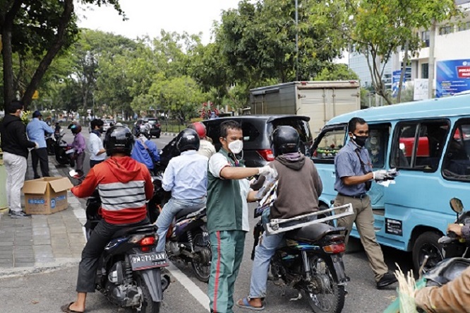 Dukung penanganan penyebaran virus Corona di Wilayah Provinsi Riau khususnya di Kota Pekanbaru, Kanwil DJP Riau membagikan masker gratis kepada warga yang masih beraktifitas di luar ruangan di Pekanbaru (Rabu, 22/4).