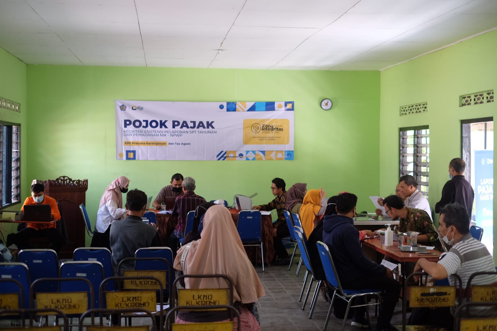 Kantor Pelayanan Pajak (KPP) Karanganyar kembali menggelar pojok pajak di Kantor Kelurahan Kroyo, Kecamatan Karangmalang, Sragen (Selasa, 7/2). Pojok Pajak dibuka mulai pukul 10.00 WIB dan diakhiri pada pukul 13.00 WIB. Kegiatan ini dilaksanakan untuk memudahkan wajib pajak melakukan pelaporan SPT Tahunan. Pada kegiatan pojok pajak ini, KPP Karanganyar turut menggandeng PT. Pos Indonesia Cabang Karanganyar untuk membuka loket pembayaran.