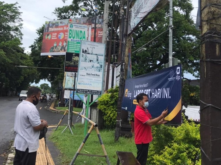 Kantor Pelayanan, Penyuluhan, dan Konsultasi Perpajakan (KP2KP) Negara memasang sejumlah spanduk Lapor SPT di wilayah Kabupaten Jembrana (Selasa, 23/2). Sebelumnya, KP2KP Negara sudah mulai memasang spanduk sejak hari Jumat, 19 Februari 2021 di masing-masing kecamatan. Pelaksanaan pemasangan spanduk tetap menerapkan protokol kesehatan.