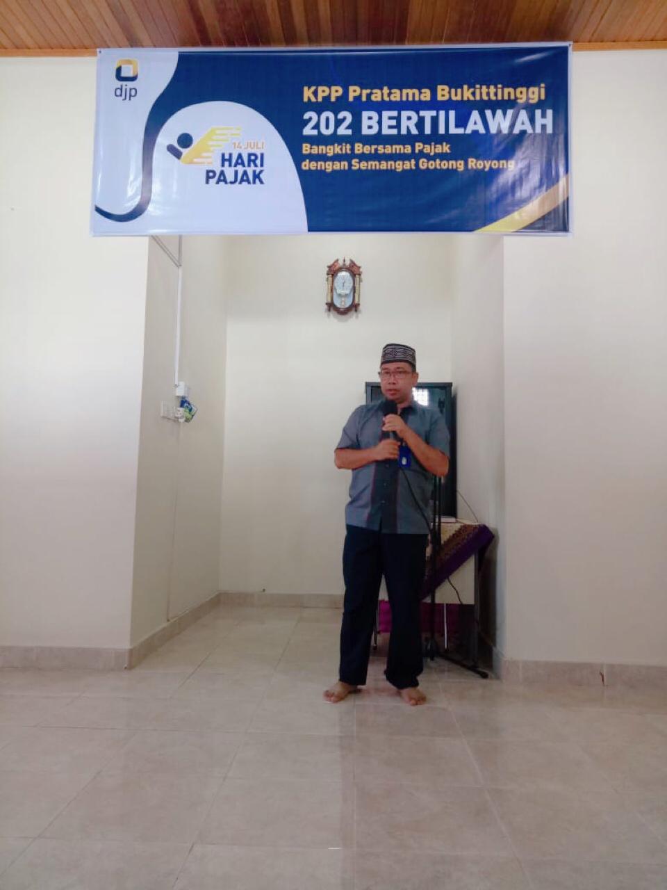 KPP Pratama Bukittinggi mengadakan Pajak Bertilawah di Mushola Ar-Rahman KPP Pratama Bukittinggi (Kamis, 09/07). Acara dimulai setelah pelaksanaan Shalat Zuhur berjamaah.