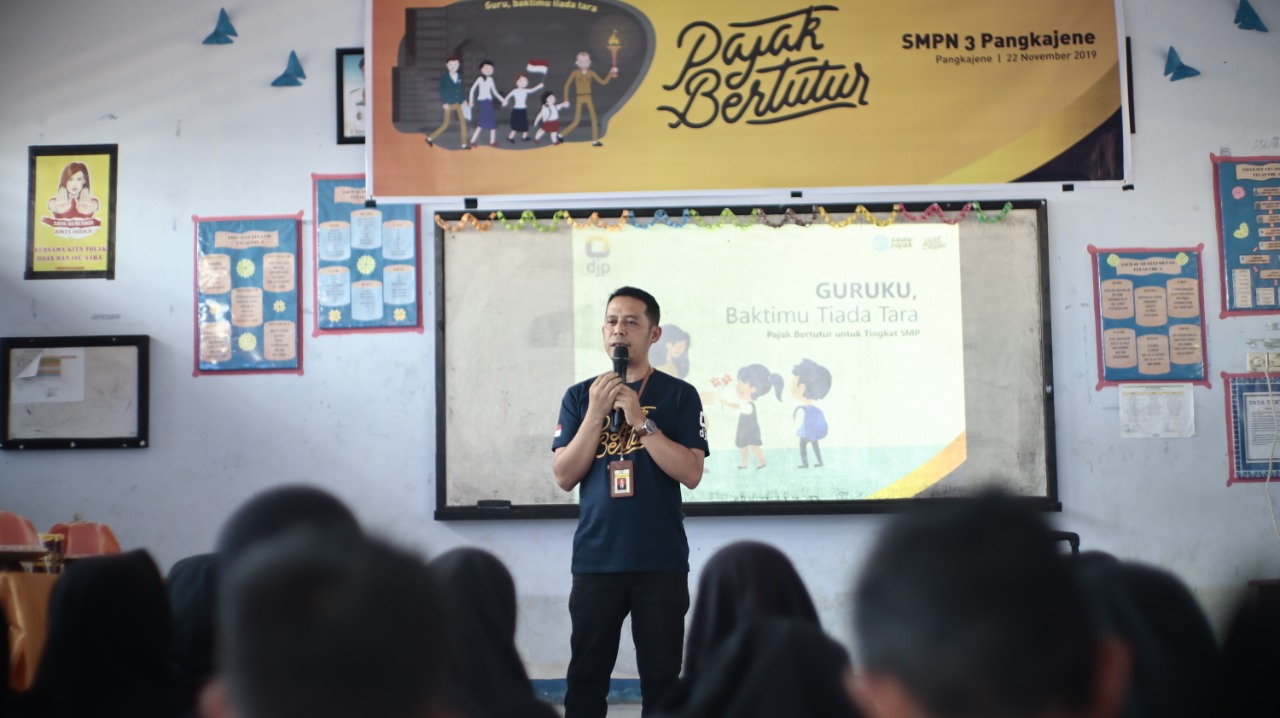 “Guru bak pelita, Penerang dalam gulita, Jasamu tiada tara,” ungkap tim Pajak Bertutur Kantor Pelayanan Penyuluhan dan Konsultasi Perpajakan (KP2KP) Pangkajene pada pelaksaan kegiatan Pajak Bertutur yang diadakan di SMP Negeri 3 Pangkajene (Jumat, 22/11).