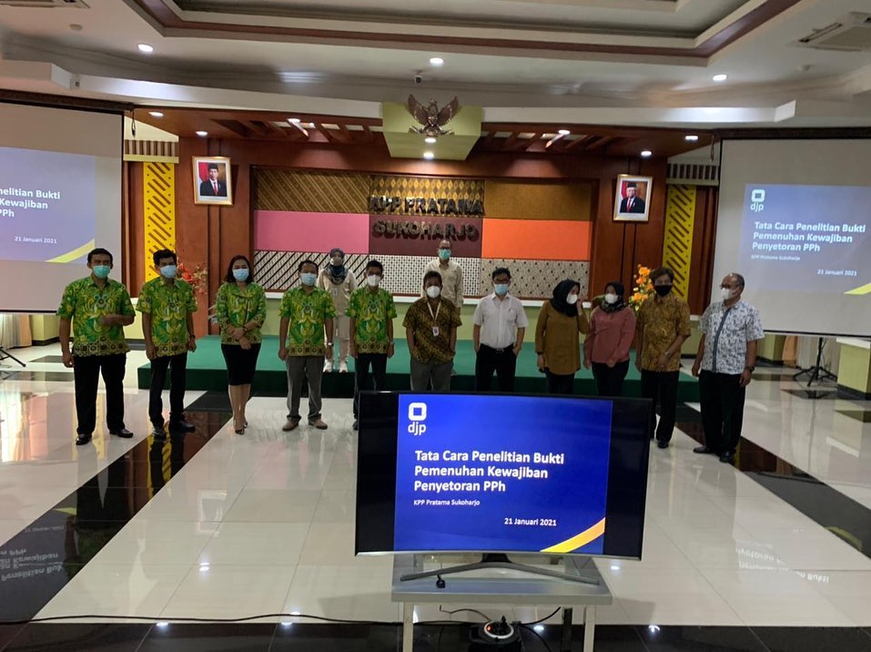 Kantor Pelayanan Pajak (KPP) Pratama Sukoharjo menyelenggarakan sosialisasi terkait tata cara penelitian bukti pemenuhan kewajiban penyetoran PPh di aula KPP Pratama Sukoharjo (Kamis, 21/1). Anggota Ikatan Pejabat Pembuat Akta Tanah (IPPAT) di wilayah Kabupaten Sukoharjo dan Wonogiri menghadiri sosialisasi ini.
