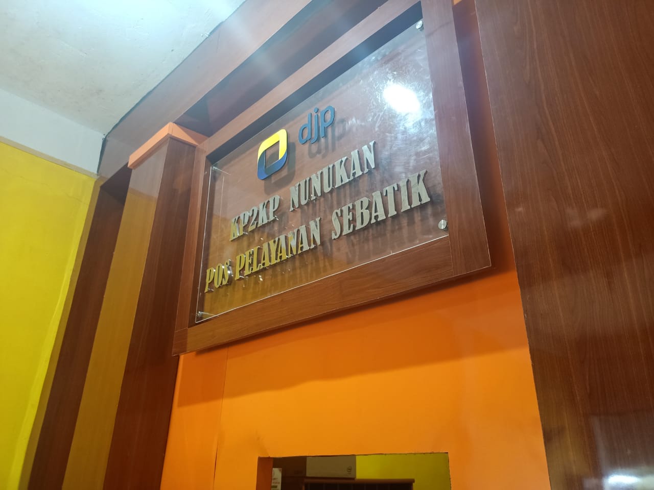 Kantor Pelayanan, Penyuluhan, dan Konsultasi Perpajakan (KP2KP) Nunukan membuka Pos Pelayanan Pajak di Pulau Sebatik yang terletak di Desa Sungai Nyamuk di Kabupaten Nunukan dengan mengirimkan dua orang petugas (Senin, 14/12). Kegiatan mingguan yang sebelumnya sempat dihentikan karena pandemi Covid-19 ini sudah mulai kembali rutin dilaksanakan dengan tetap memperhatikan protokol kesehatan.