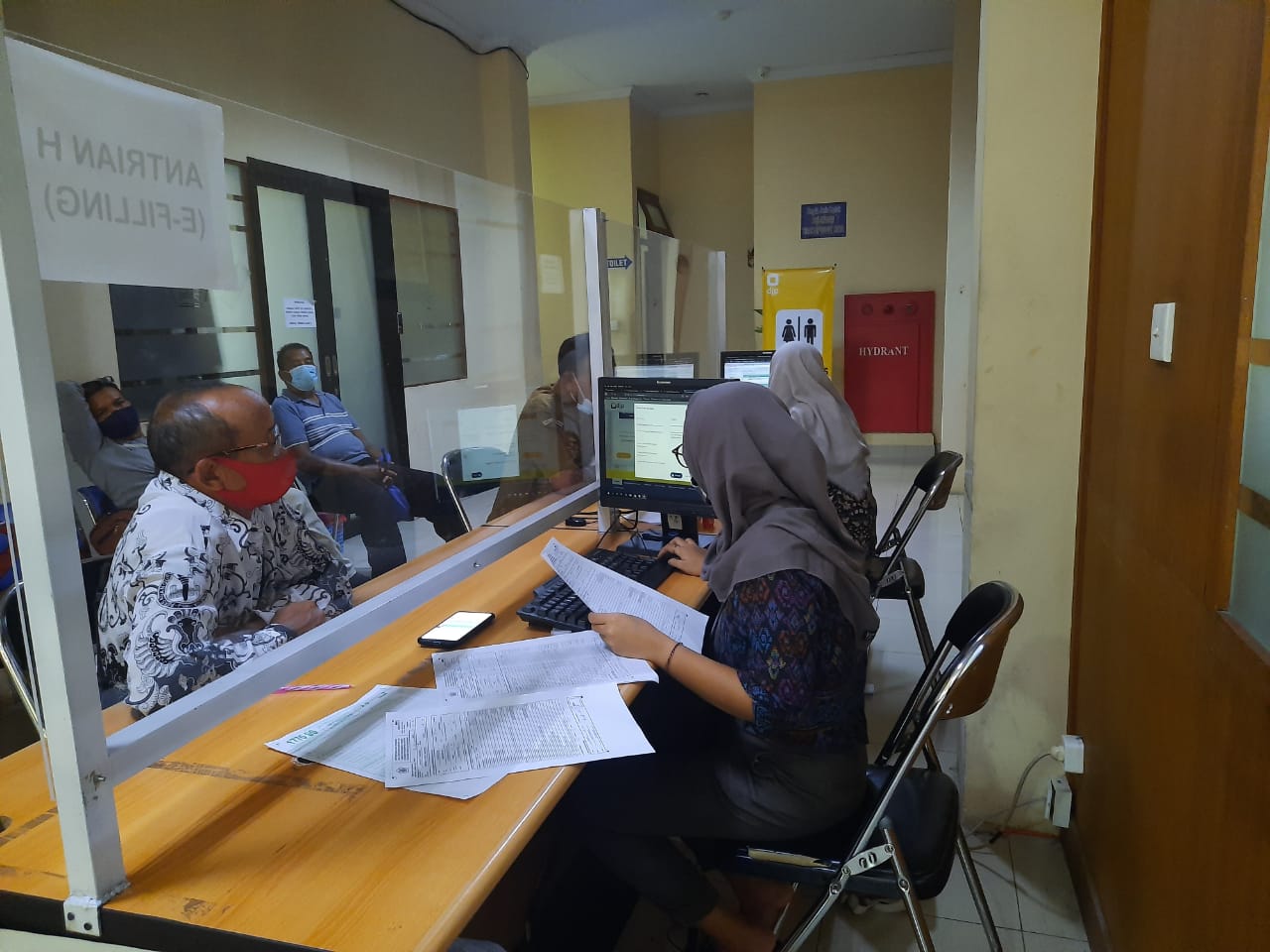 Dalam upaya meningkatkan kepatuhan pelaporan SPT Tahunan, para petugas pajak Kantor Pelayanan Pajak (KPP) Pratama Gianyar memberikan asistensi kepada wajib pajak karyawan/pegawai di loket khusus yang dibuka untuk melayani pelaporan SPT Tahunan secara daring via e-Filing (Selasa, 8/12).
